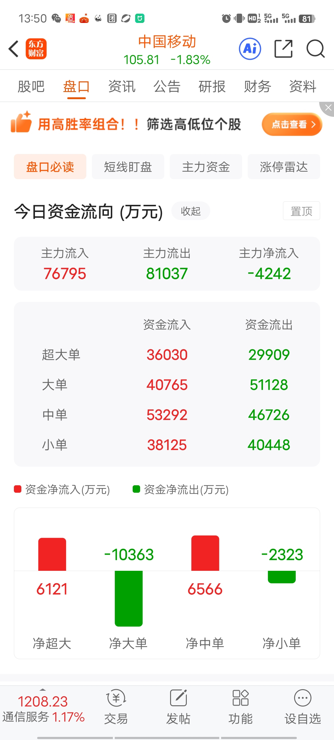 $中国移动(SH600941)$ 看来这是散户拼命在出
