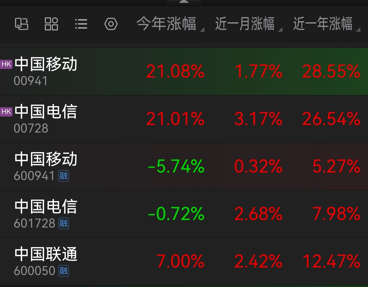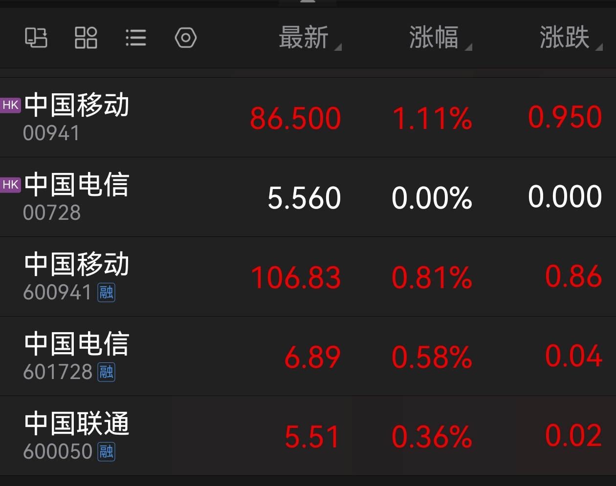 $中国移动(SH600941)$ 中国移动h股每天涨多一点,小数怕加时间长了就不得了。