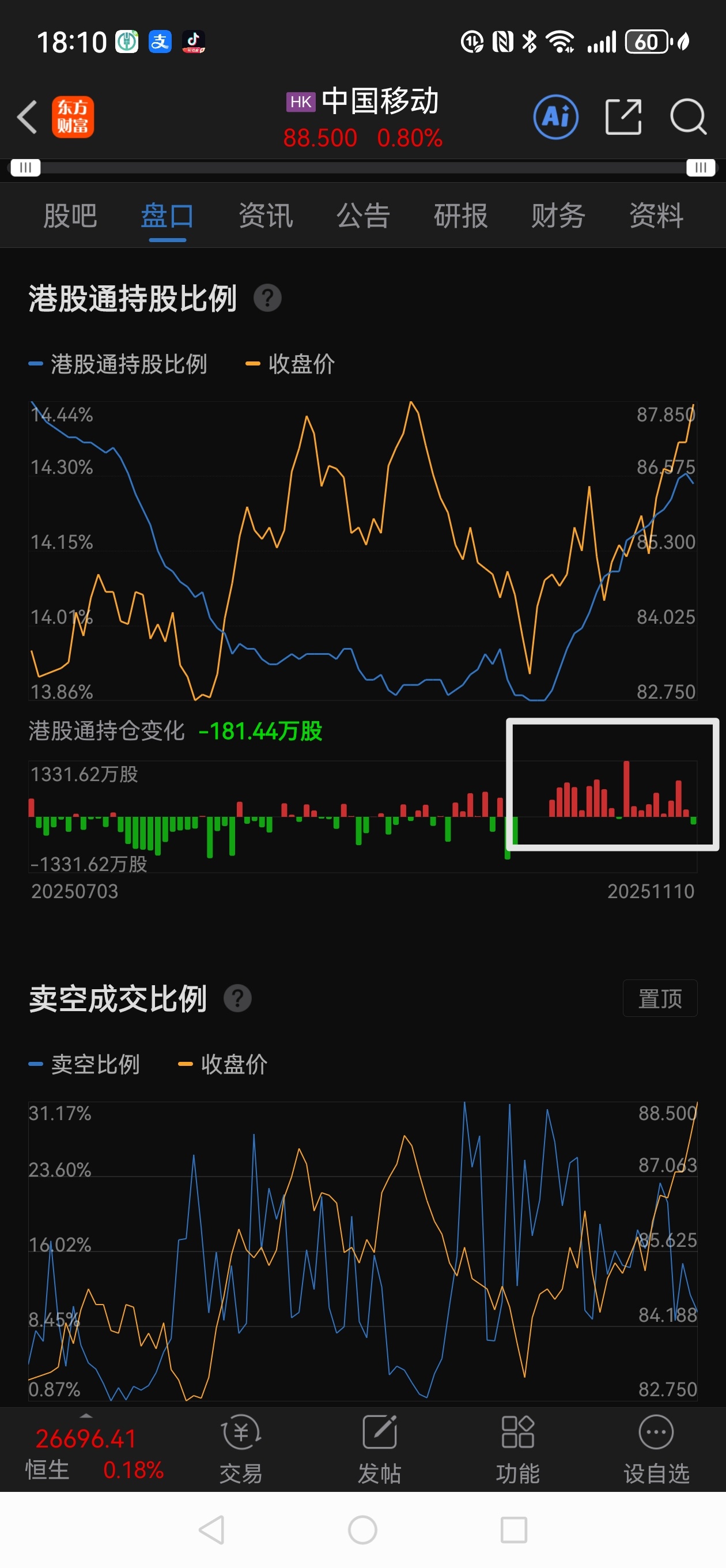 是谁在买中国移动h股?是南下资金?