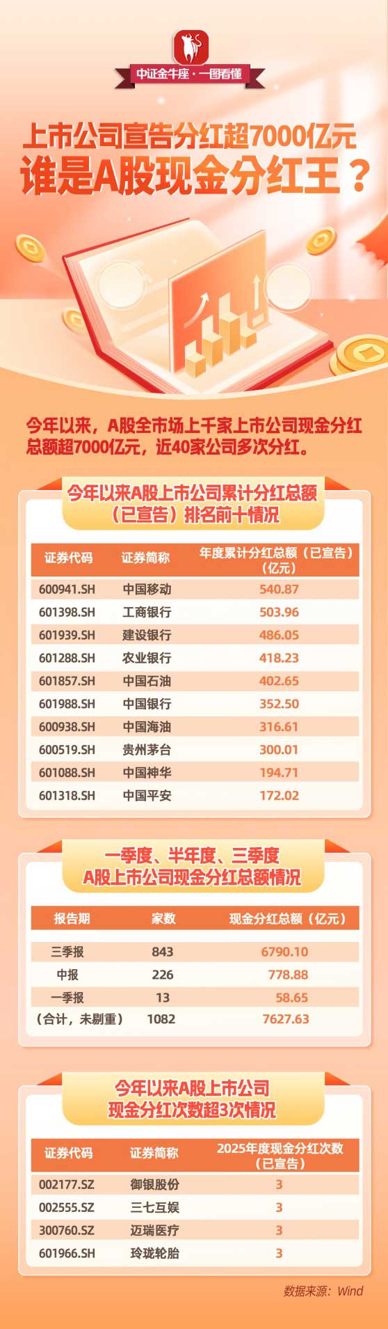 【一图看懂】上市公司宣告分红超7000亿元!它是现金分红王