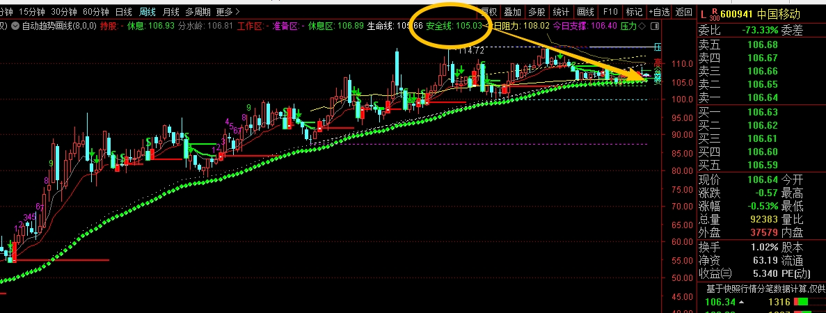 $中国移动(SH600941)$ 周线来看是非常稳健的,只需要盯着周线安全线105.03位置即可,能稳住就没问题,有效跌破就要高度注意破位风险。日线来看主要是观察大均线108.13位置,近期一直都在震荡徘徊,没有明确的方向,重点还是以周线为准。