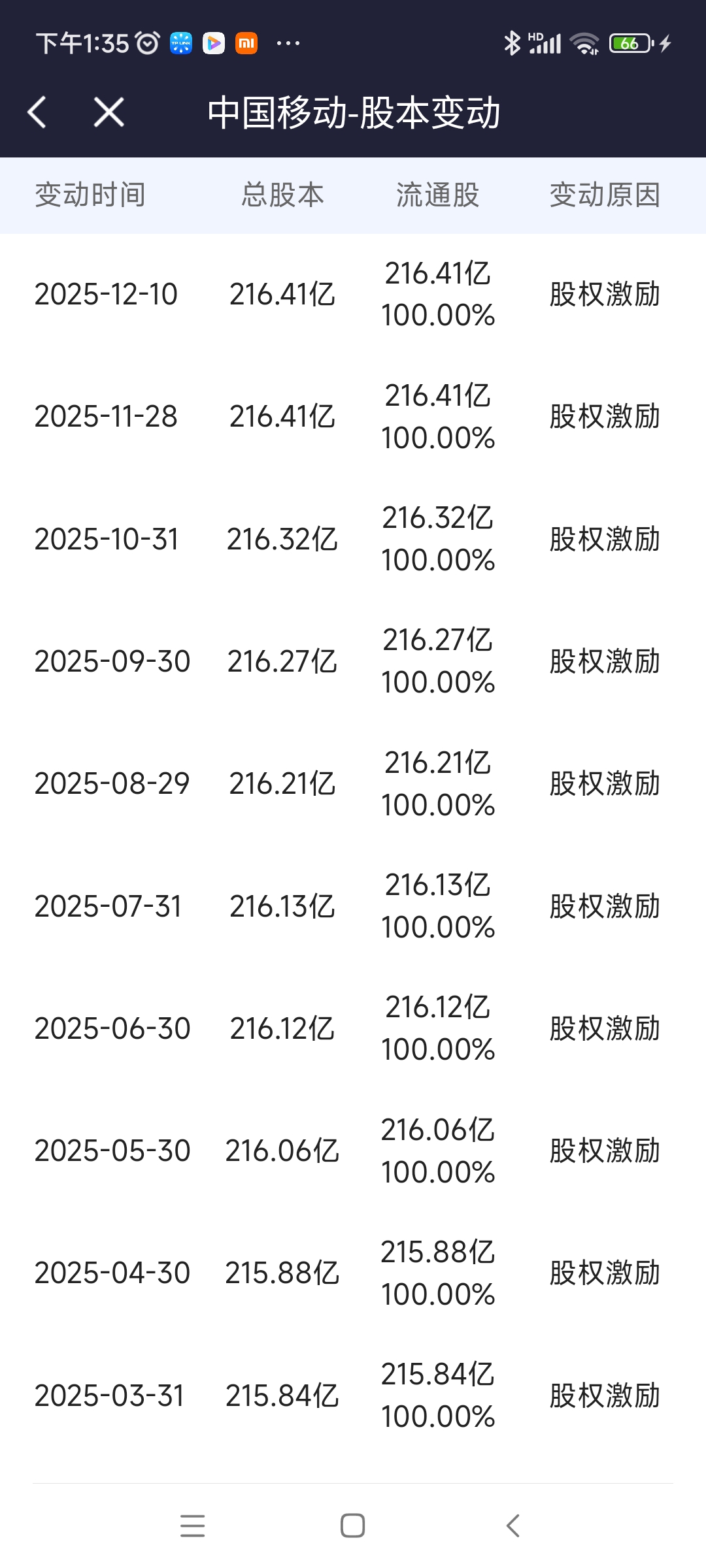 $中国移动(SH600941)$ 我才发现这股本增长的速度让人汗颜啊这利润稀释的让人恐怖啊