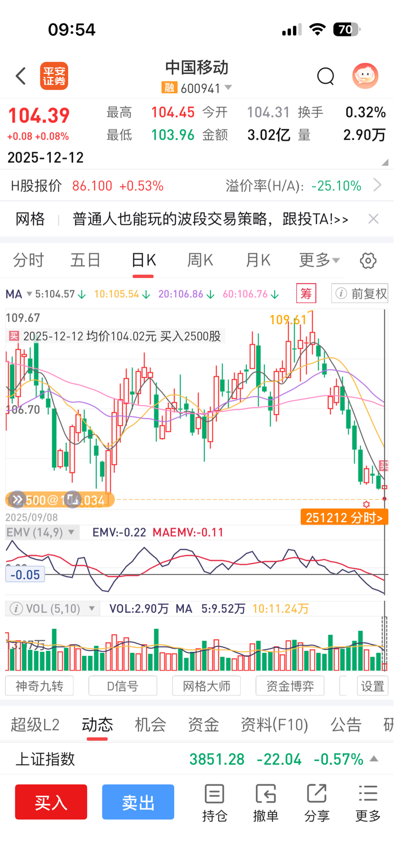 $中国移动(SH600941)$ 这算是抄到底了吗
