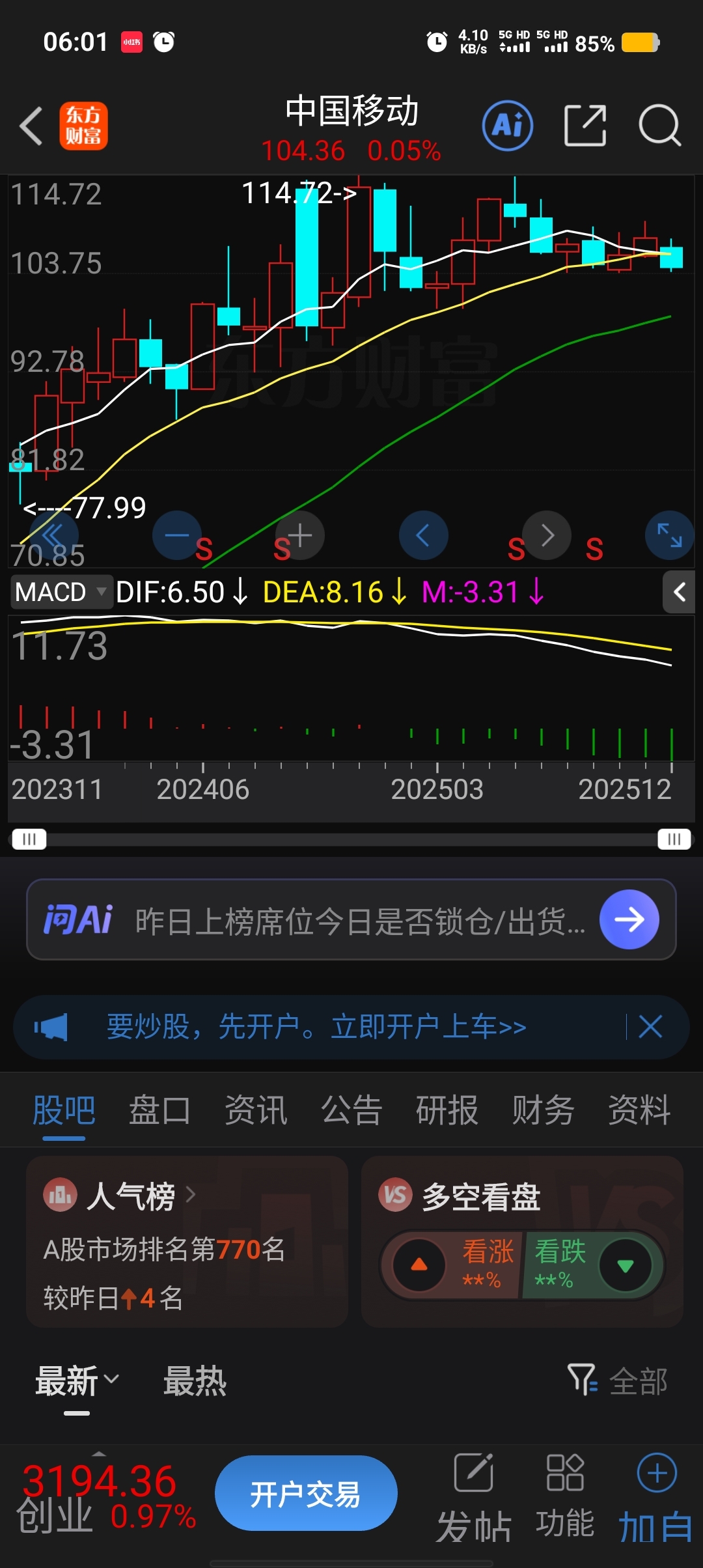 $中国移动(SH600941)$ 月线死亡交叉了!