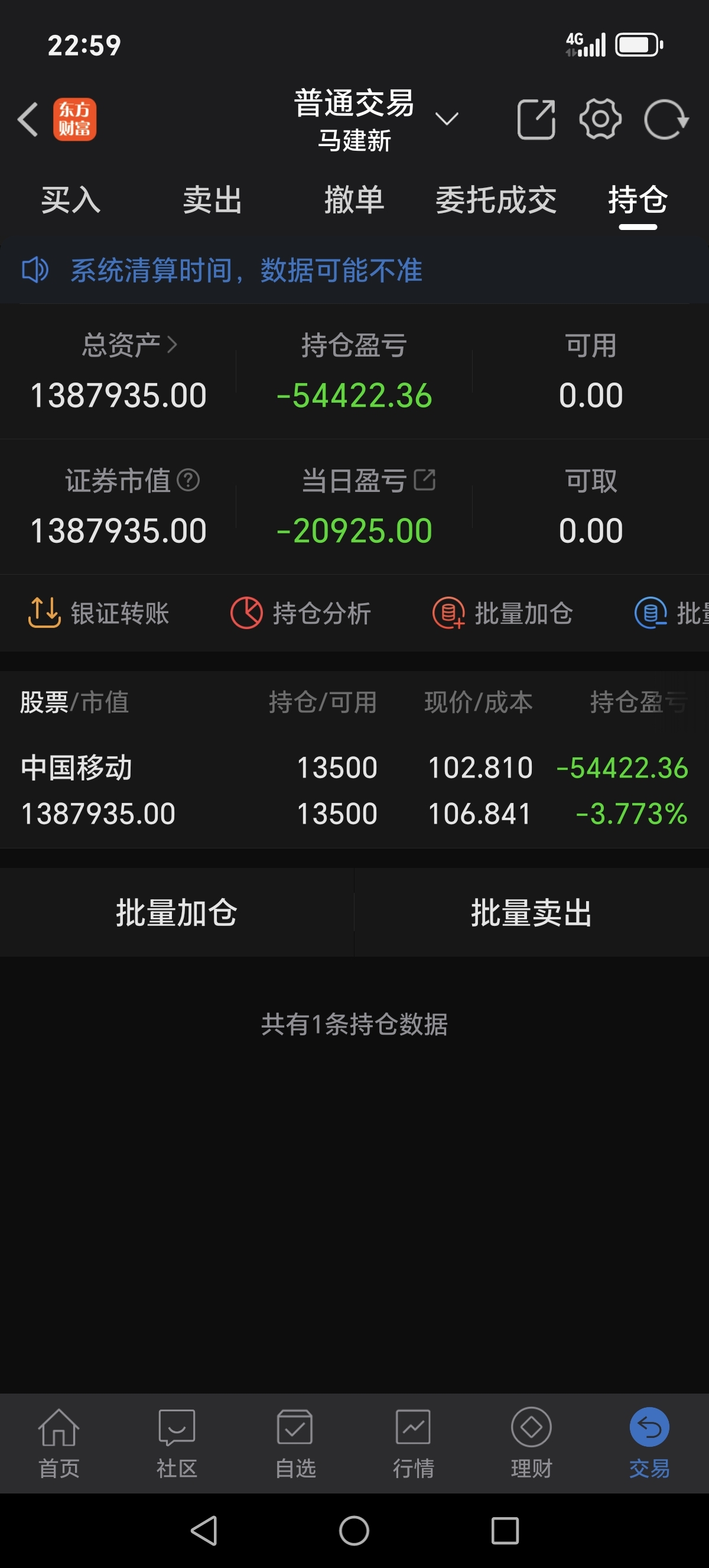 $中国移动(SH600941)$ 明天下午3点以前不反弹全部清仓不玩了!