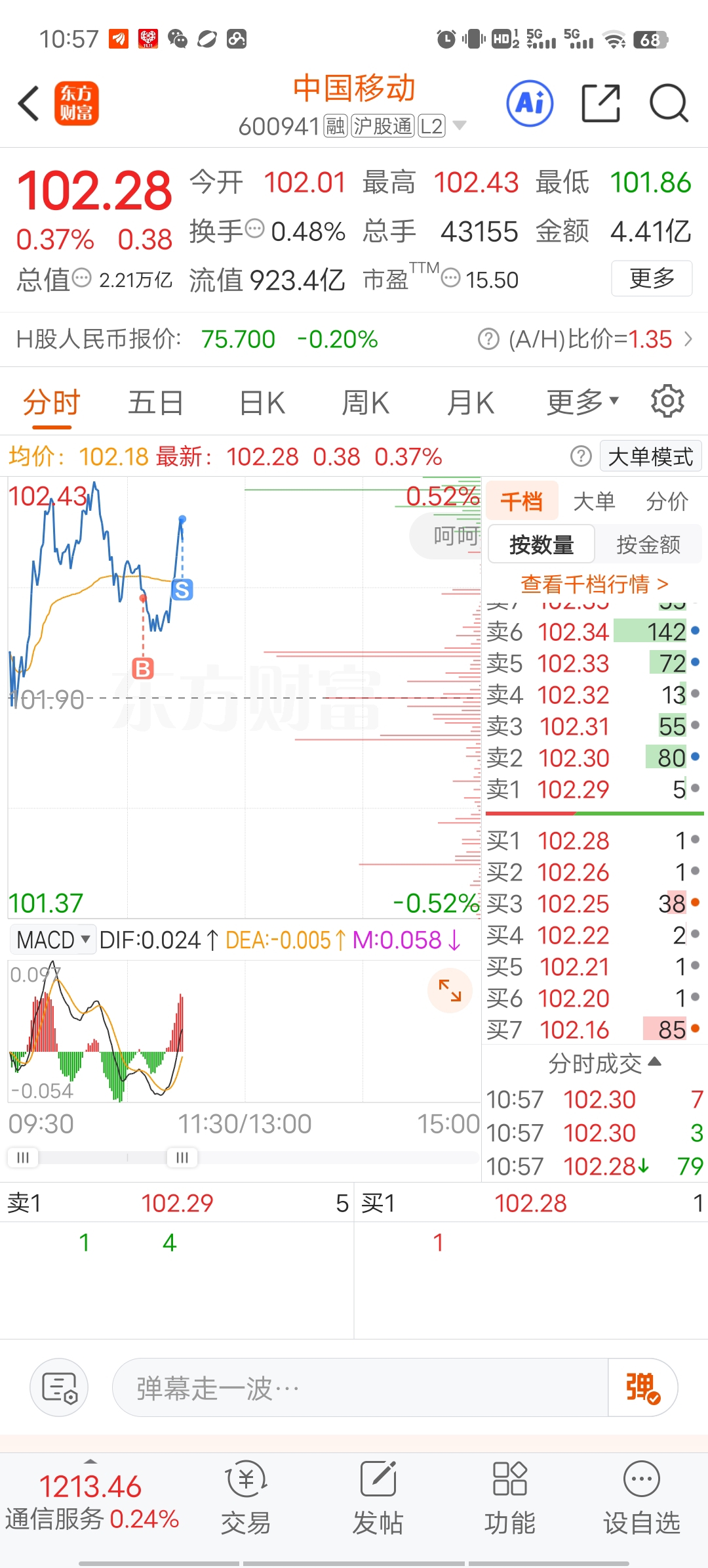 $中国移动(SH600941)$ 鸡腿又来了
