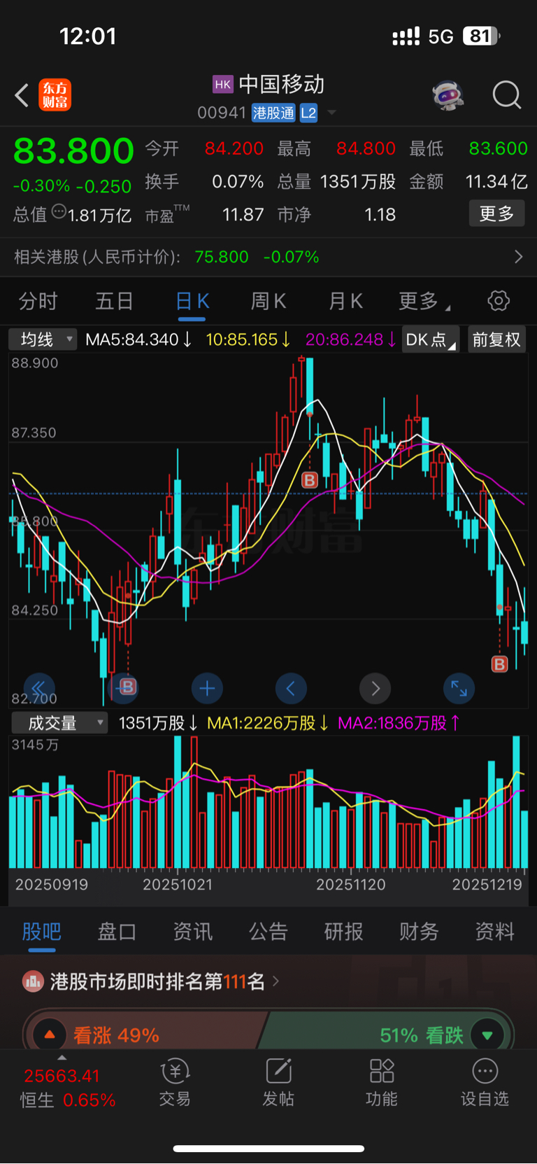 $中国移动(SH600941)$ 看你涨了几年,实在看不下去了,一出手就把你2万亿市值买崩