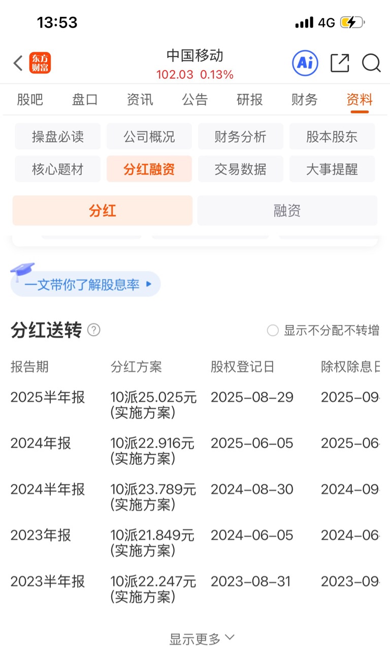 $中国移动(SH600941)$ 2026年分红有望突破,持10股送50元,买的多赚的多