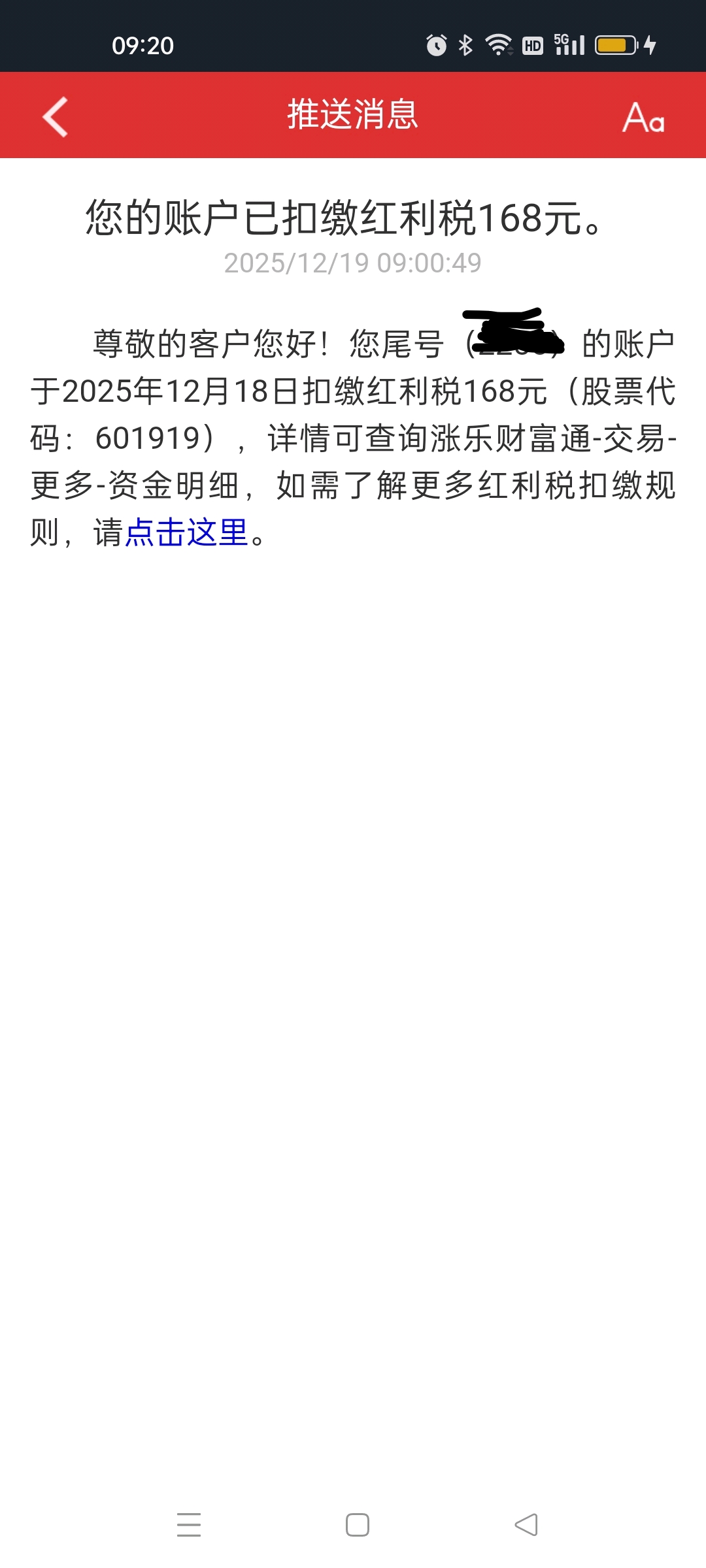 前天买1000股的,昨天出,竟然扣我168块红利税!太过分了