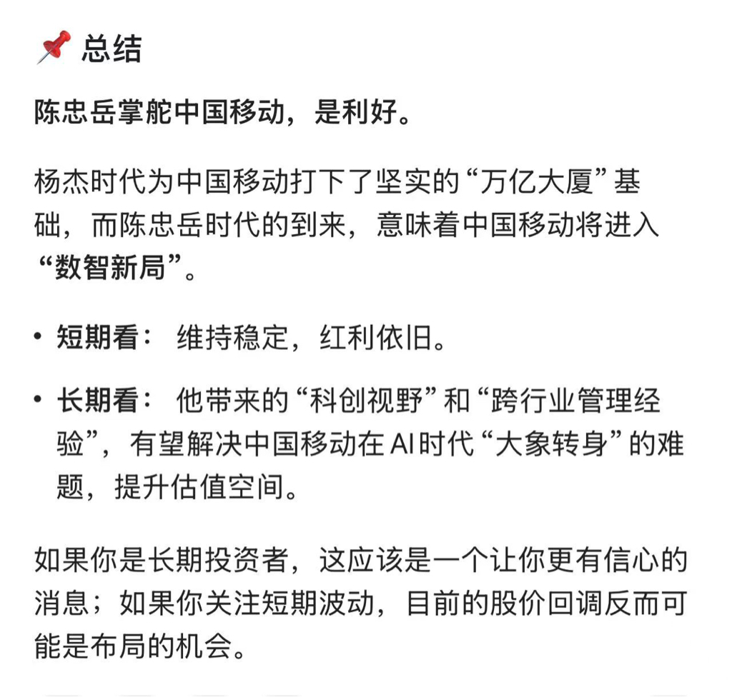 $中国移动(SH600941)$ 利好来了