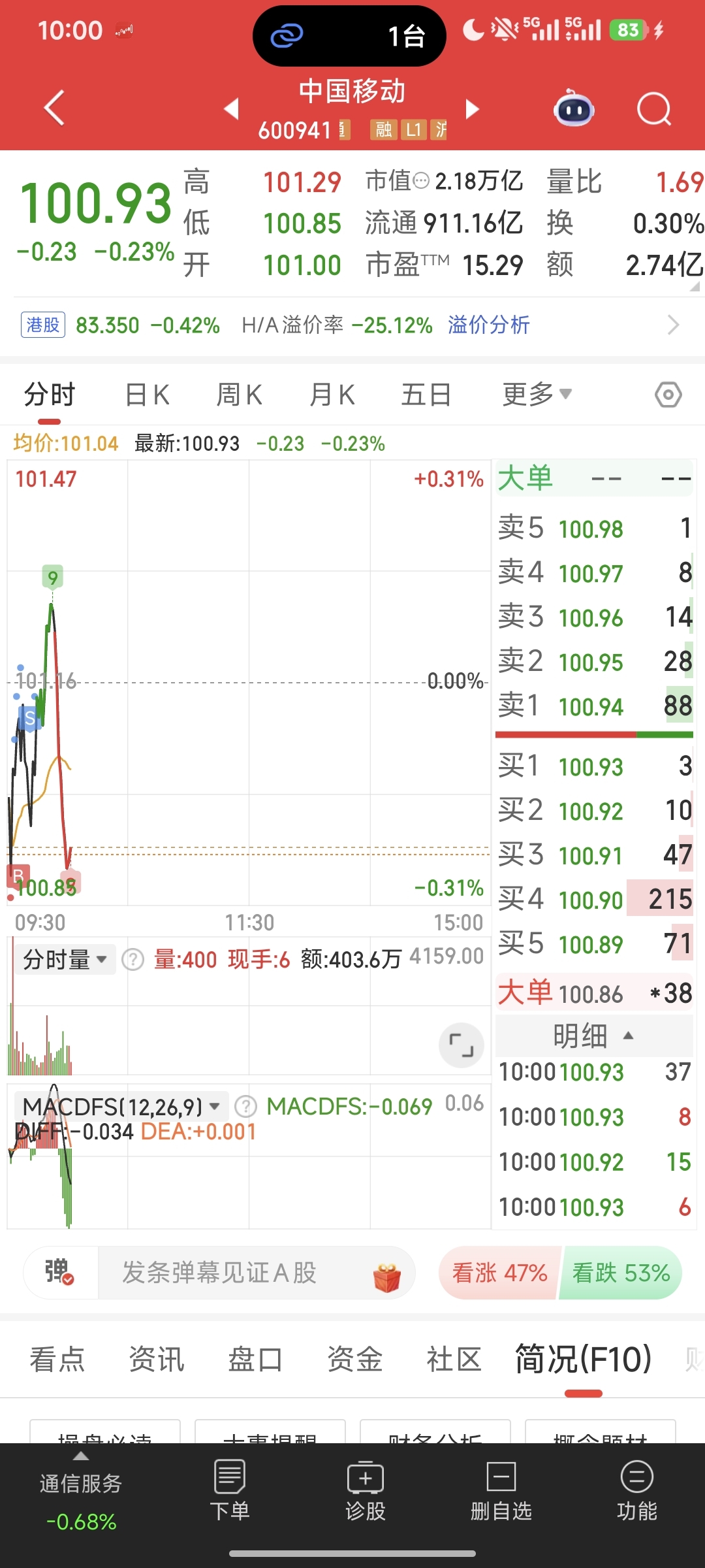 $中国移动(SH600941)$ 还说卖早了 又砸下来让我低吸,这主力还怪好的