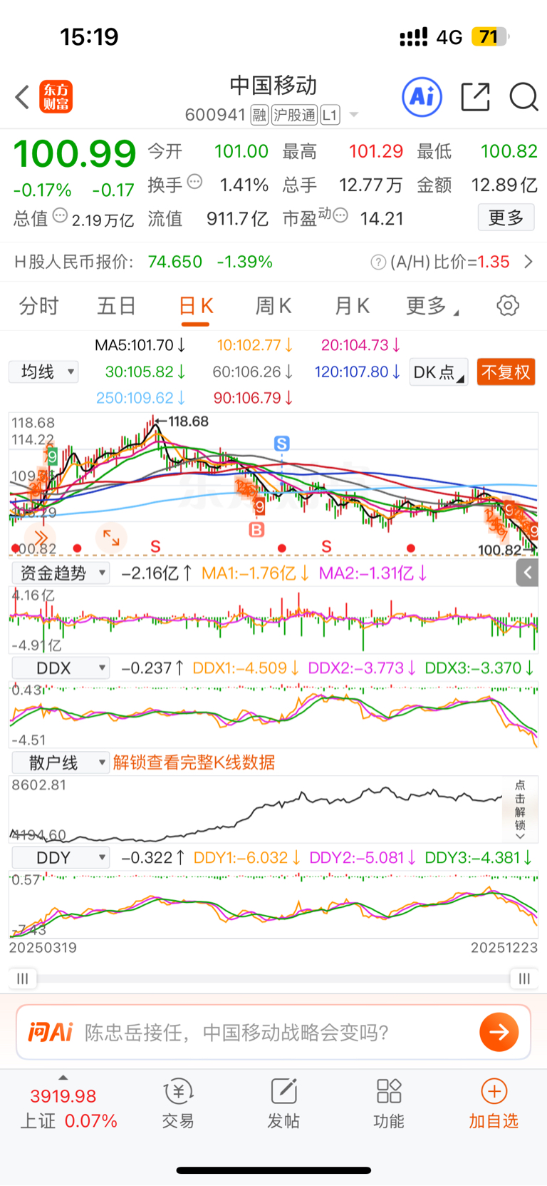 $中国移动(SH600941)$ 当初割了他还特别心疼,一直,今天一看还好还好