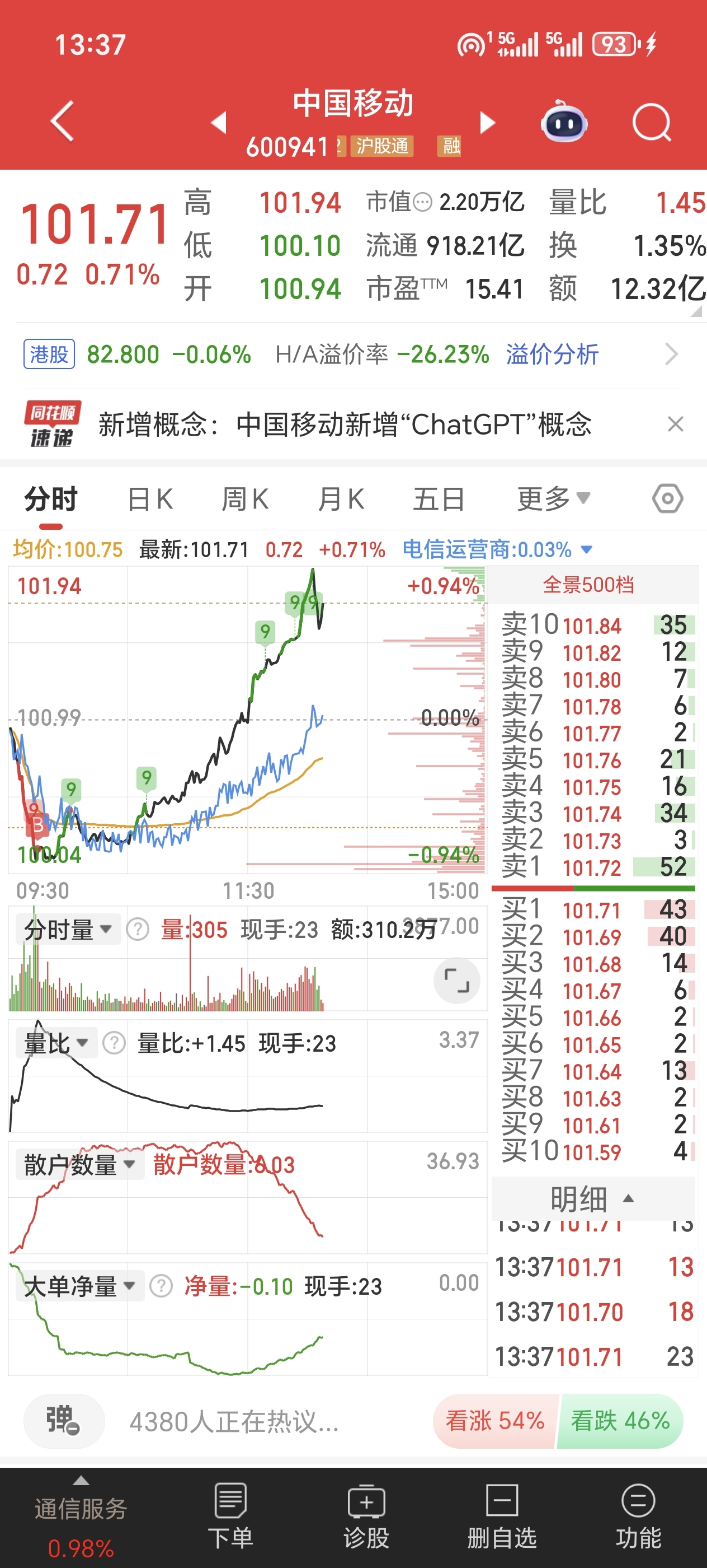 $中国移动(SH600941)$ 不是我才买两手你就哐哐哐涨