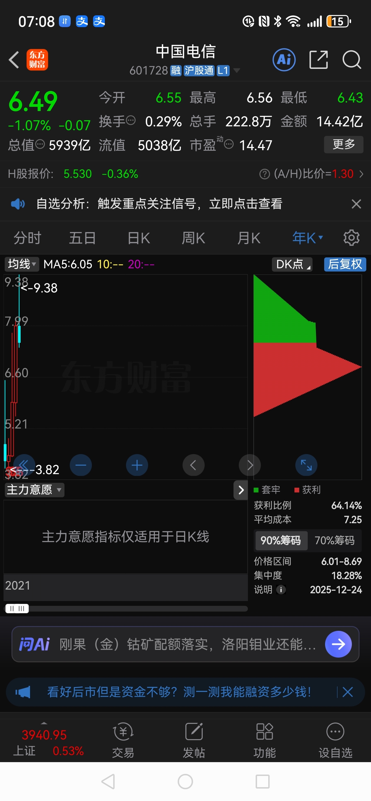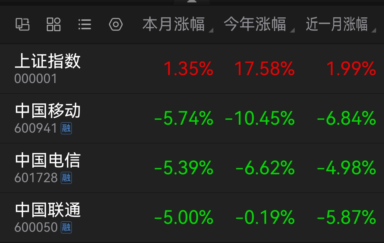 中国移动和中国电信2025年K线,开始侵蚀2024年的K线,开始吃老本了。这是危