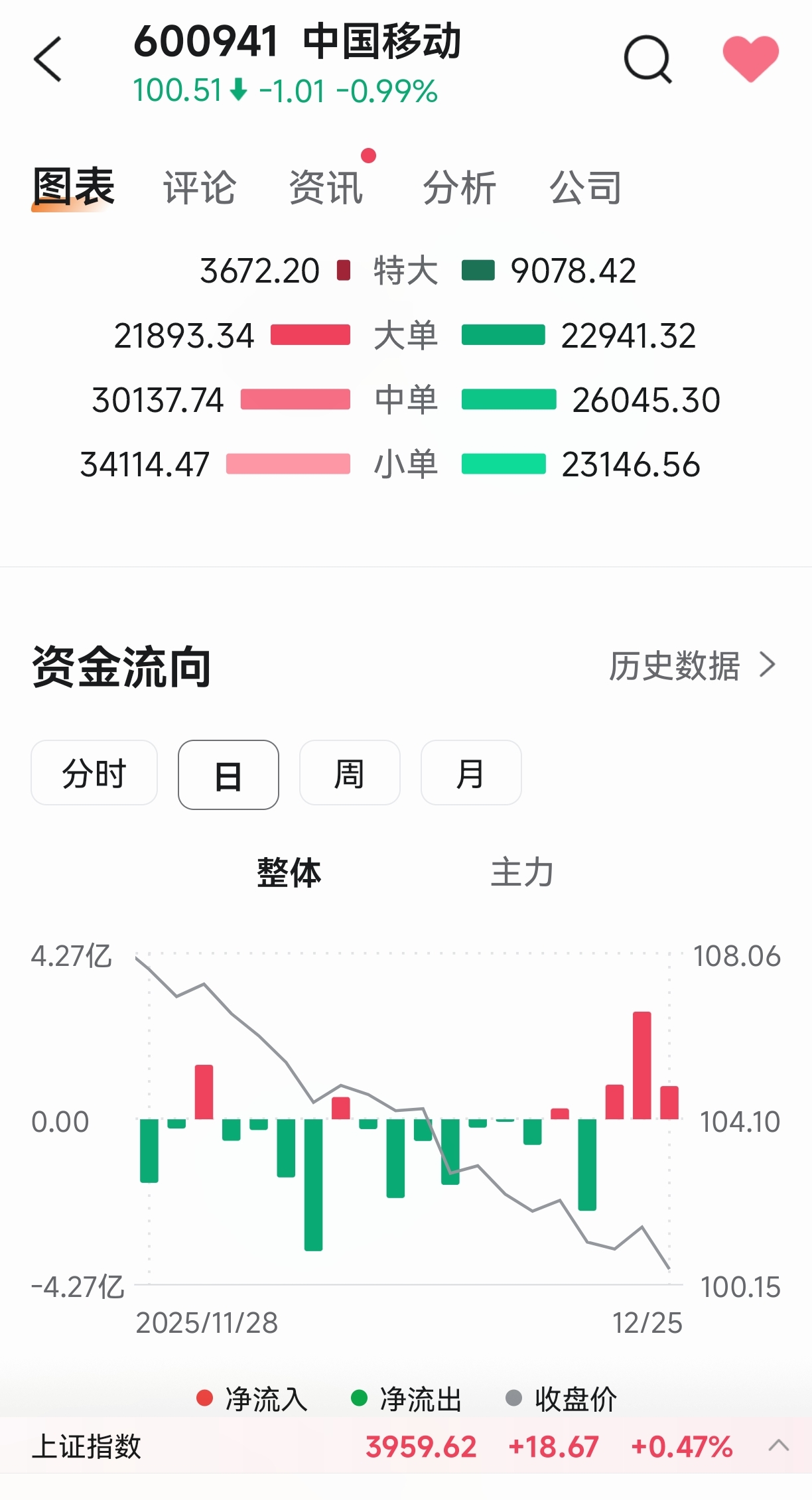 $中国移动(SH600941)$ 看来包括本人在内的散户有大量坚持价值投资的,因为这个趋势中还大量入货的,一般不是短炒之人。看看那些大户有多少筹码卖不完。你卖,大家就买。这个价位有超过4.7%的息率,还有稳定的增长,到手现金流比存银行、买国债、买保险、买房划算。市场里比这更稳当又高息的没几个了。无非等三月底年报就是。立此存照!