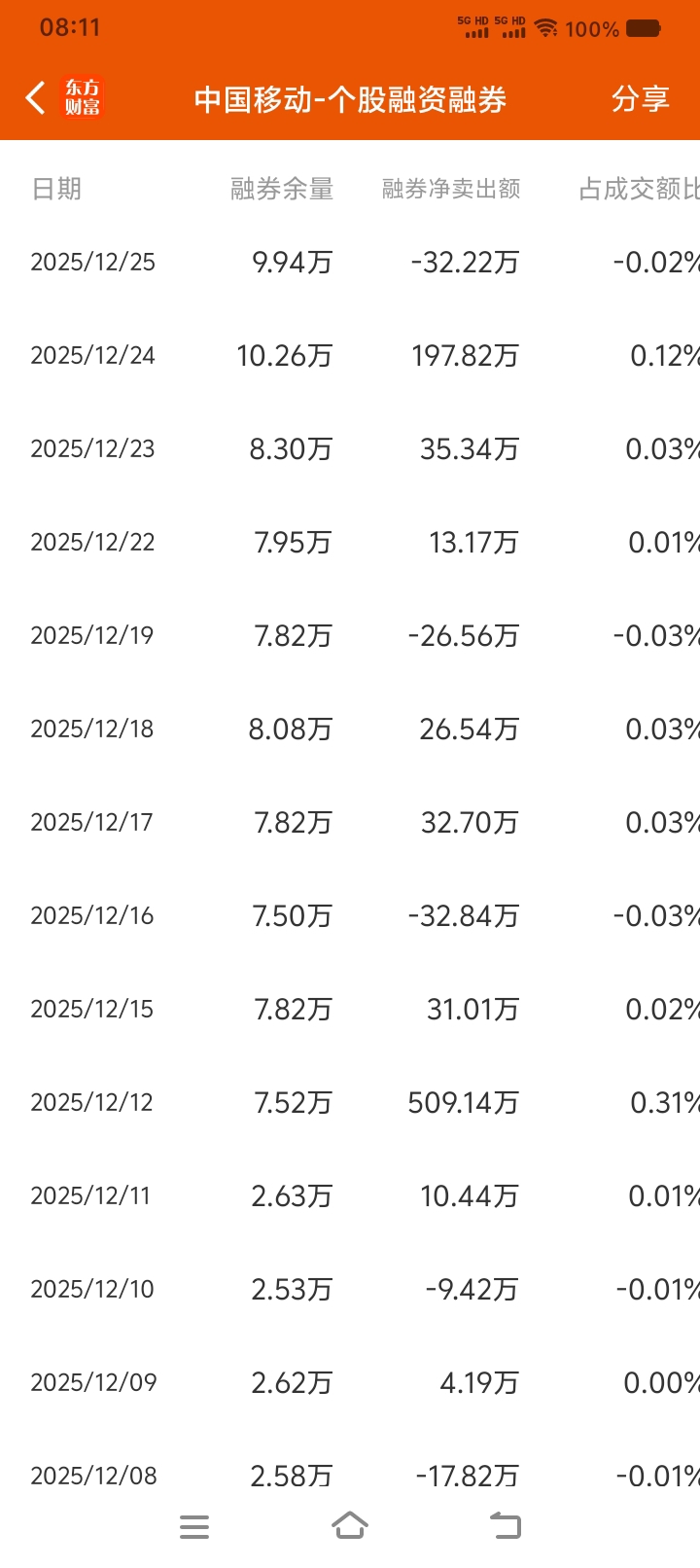 $中国移动(SH600941)$ 融券未回落,继续寻底