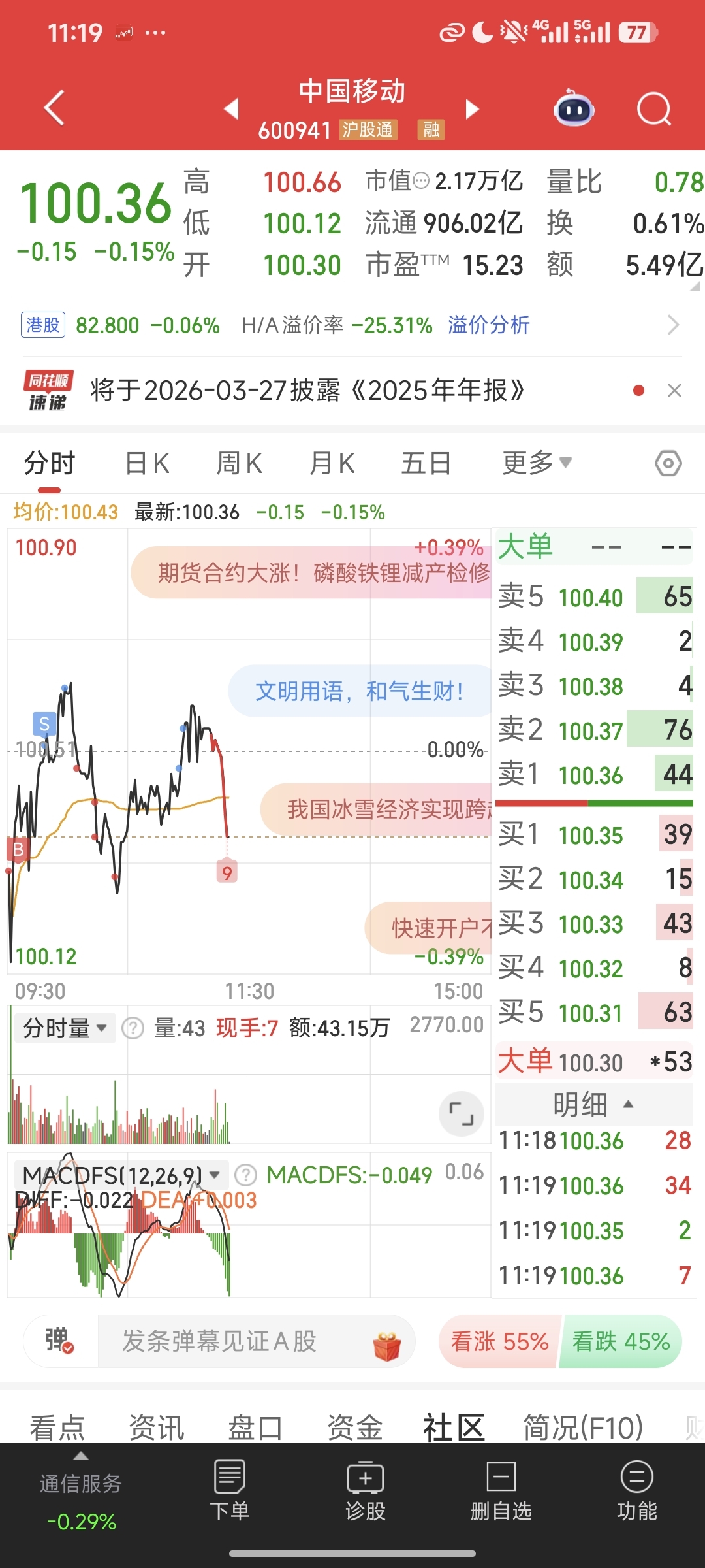 $中国移动(SH600941)$ T完了主力你随意吧