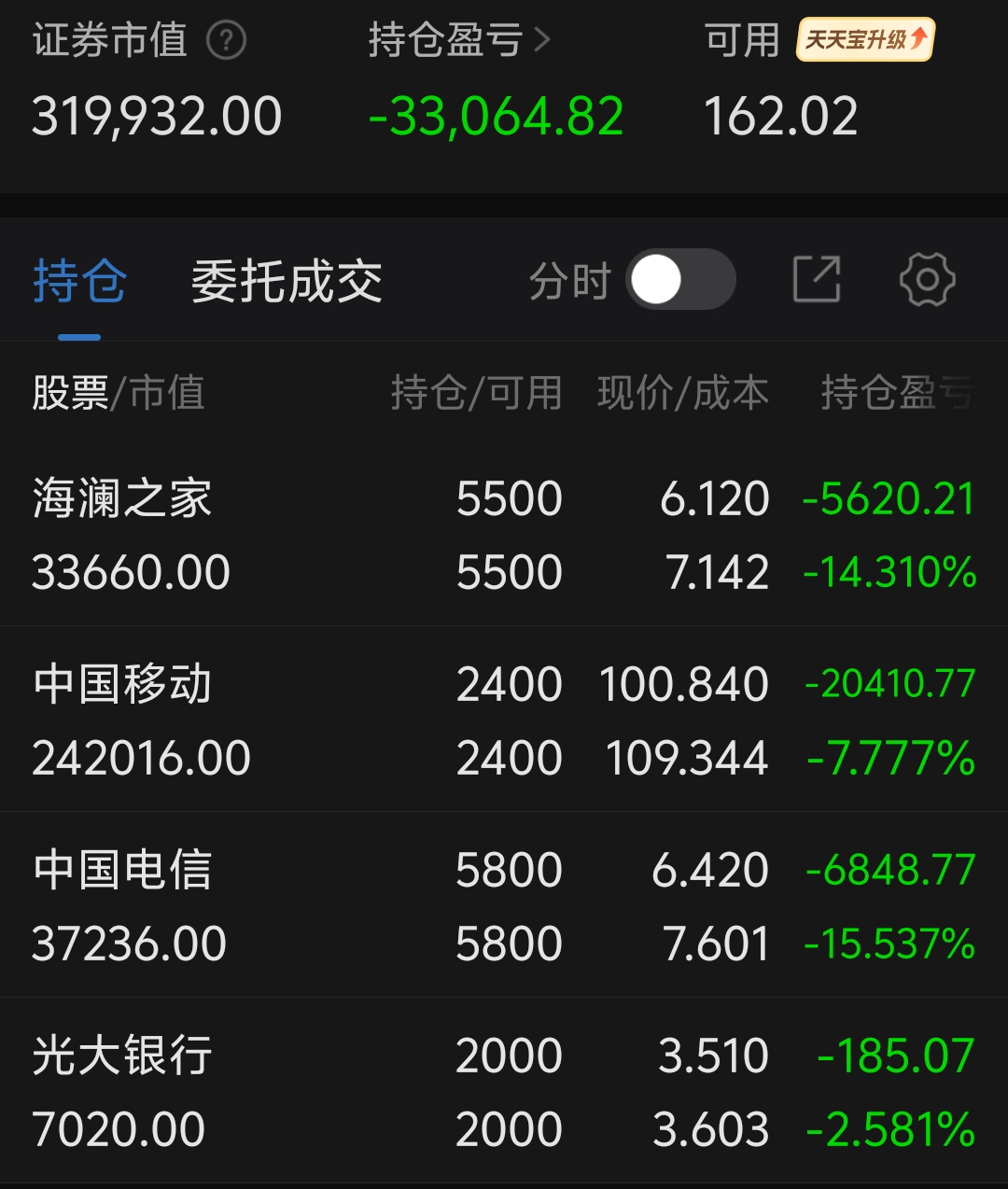 $中国移动(SH600941)$ 为了给股友提供情绪价值,坚定信心,给你们看看我的账户