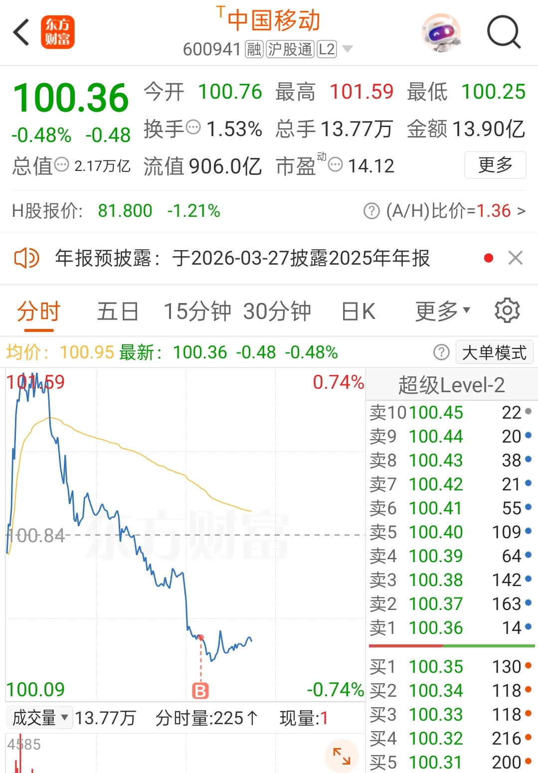 $中国移动(SH600941)$ 手欠啊,早上没舍得卖掉,要不然T一块钱多香啊