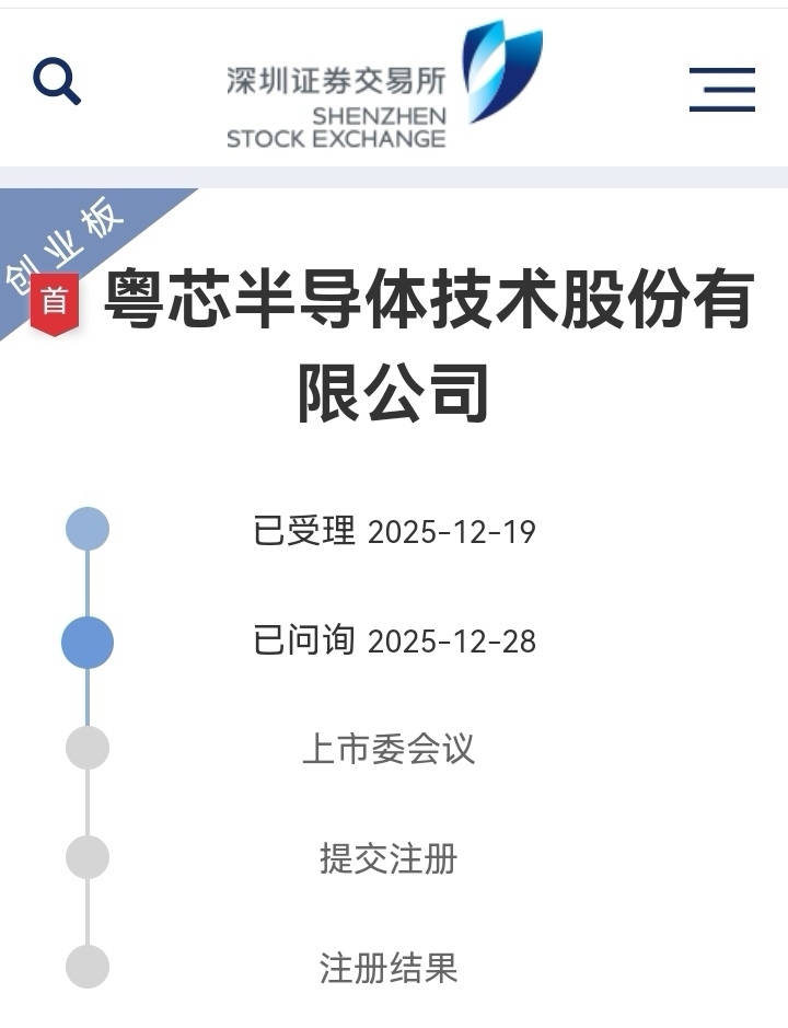 粤芯4月25日ipo辅导,11月25日辅导验收,12月19日受理,12月28日已问询,接下来等注册。预计26年5-6月上市,到时候会有一波史诗级的行情。