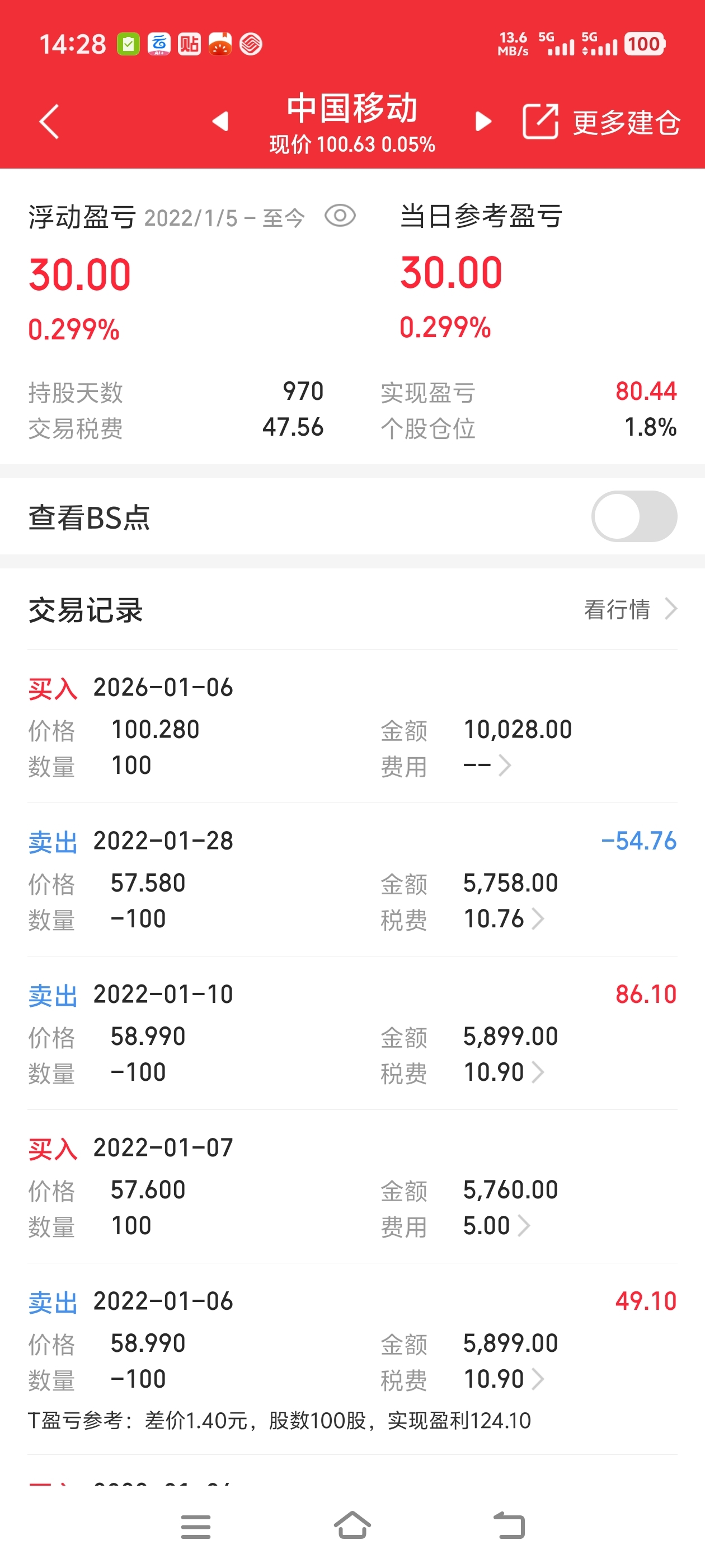 $中国移动(SH600941)$ 刚买就赚了