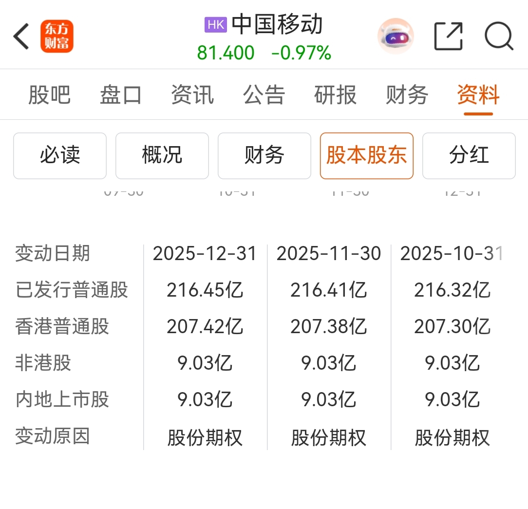$中国移动(SH600941)$ 900多亿的盘子,竟然拉不动,别看市值2.17亿,A股只有9亿股,也就是900亿