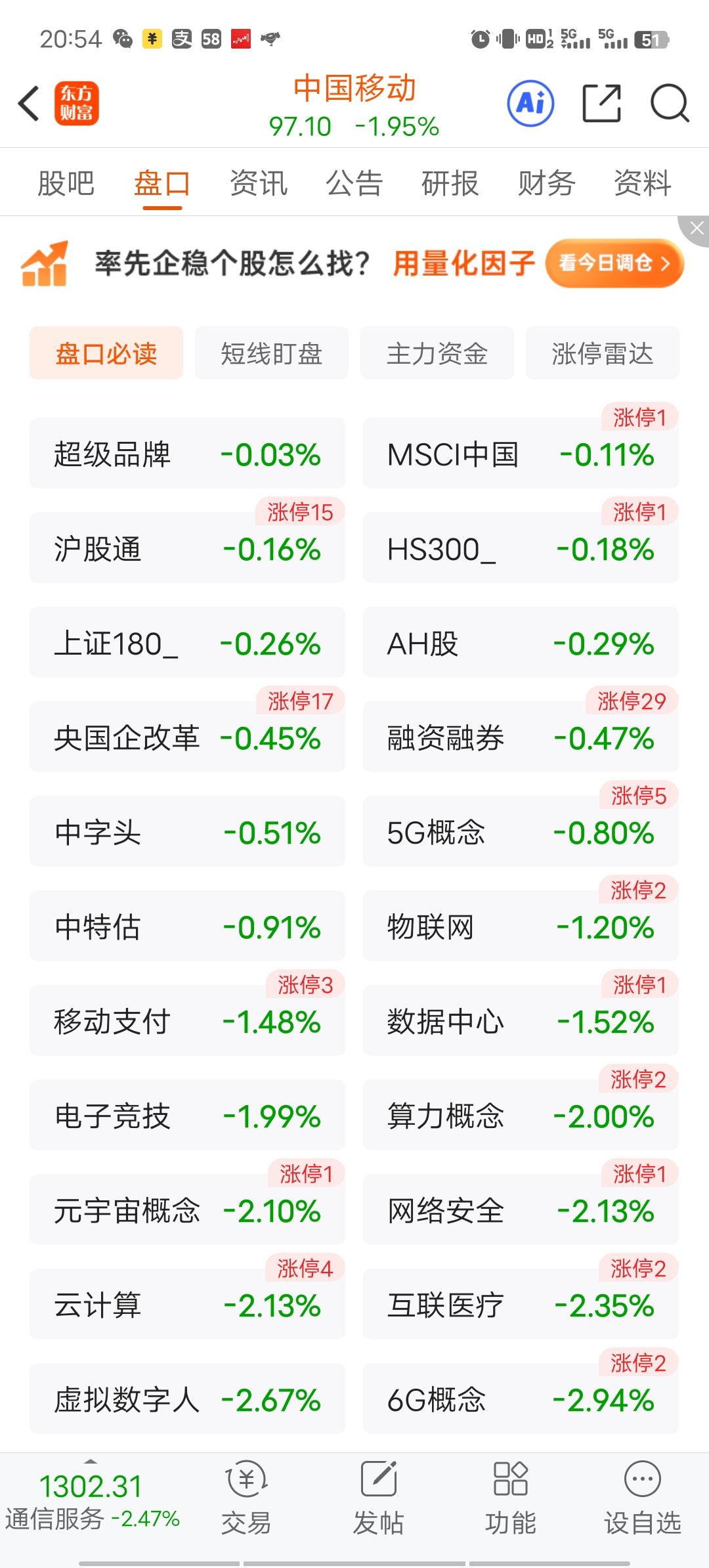 $中国移动(SH600941)$ 这才100以下两天啊,百元股概念和标签就没了,可怜,堂堂全球世界第一大通讯运营商竟然连100元都上不了