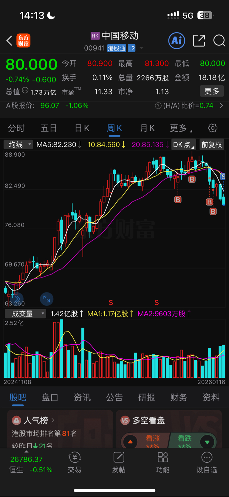 $中国移动(SH600941)$ 投降输一半吧,以前用来拉指数,现在用来砸指数。什么时候大盘破3900在回来。