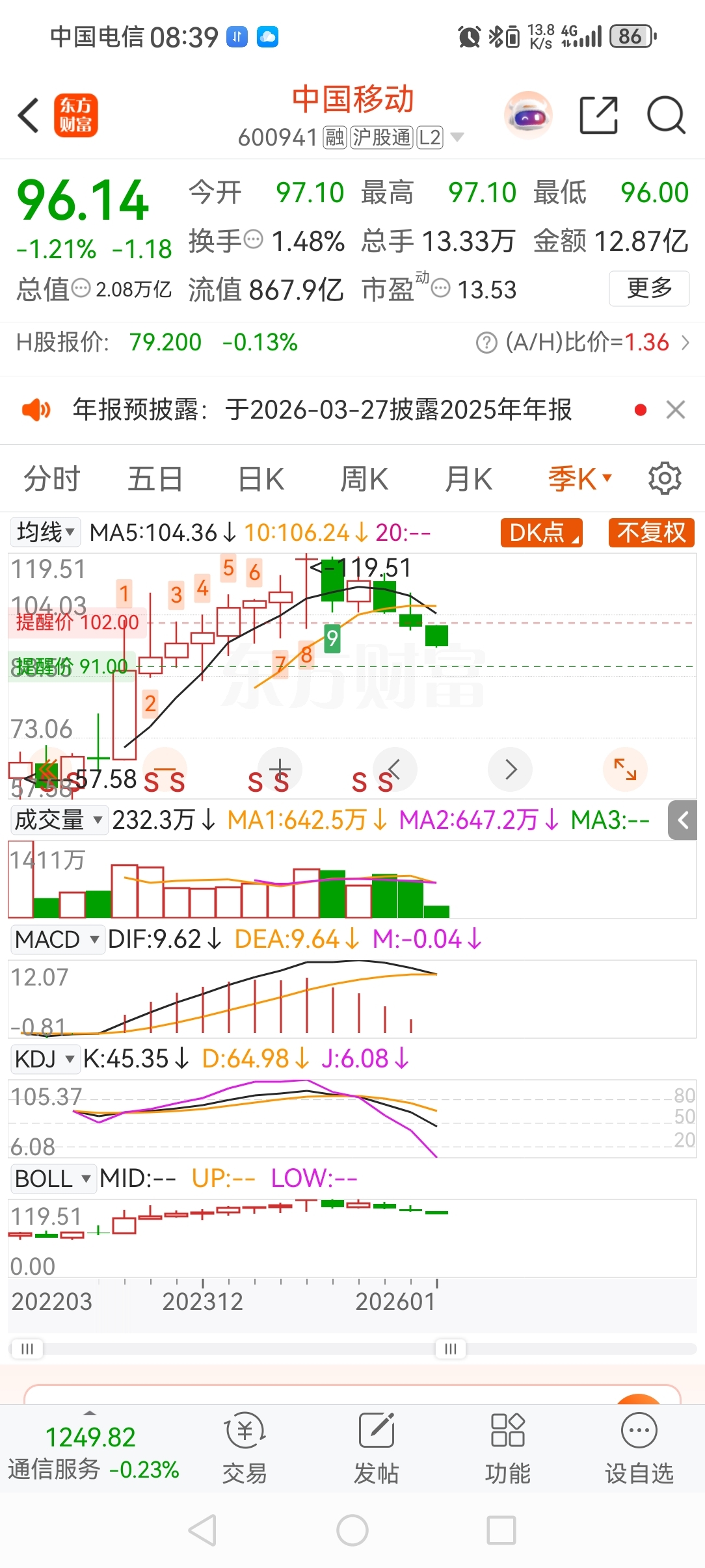 $中国移动(SH600941)$ 各位股东,早上好!我们已回到2023年9月移动的价格,各位还能扛得住吗?