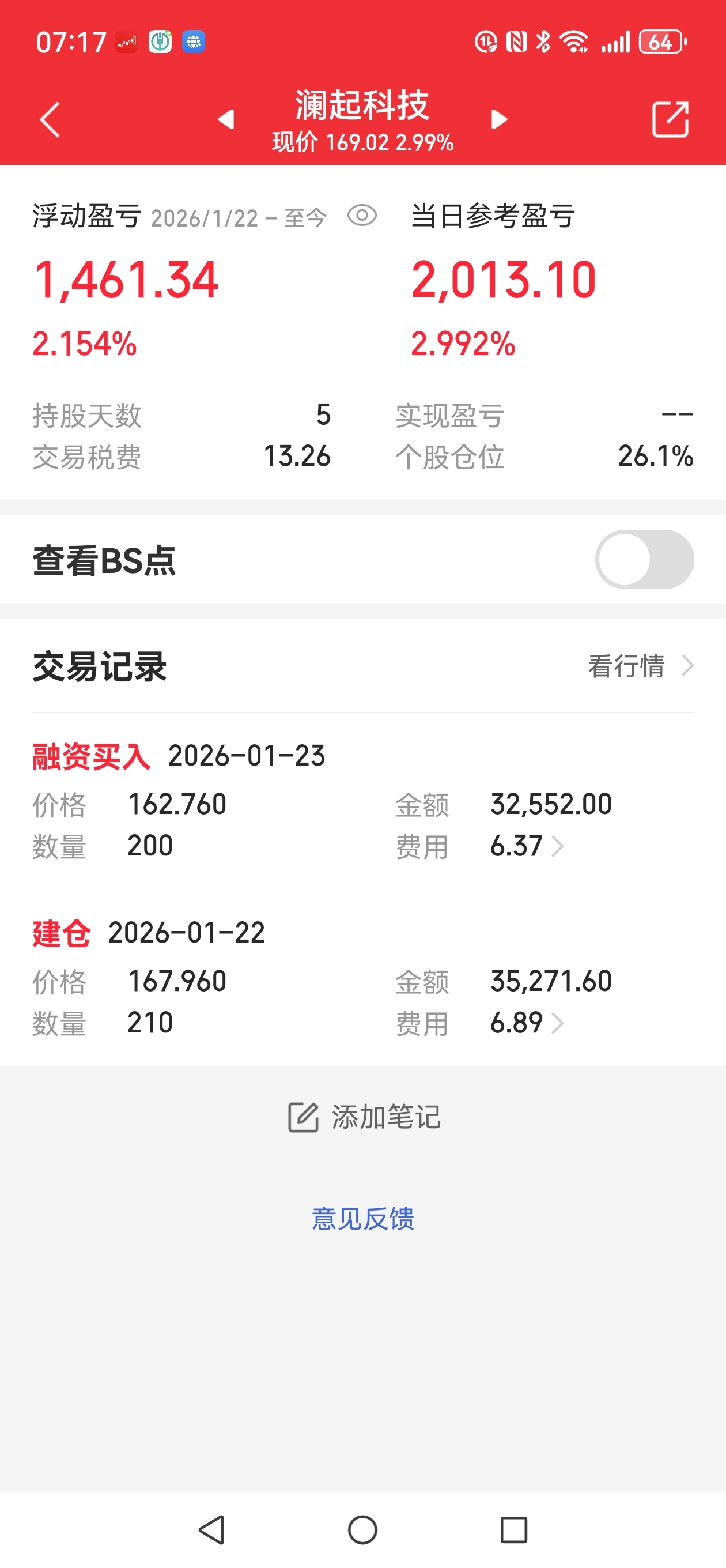 $中国移动(SH600941)$ 一笔交易归一笔,我元月19日星期一卖出中国移动H股,T+3星期四将这笔钱转到我的信用账户。500股也就3万多元,刚好能够买210股澜起科技,我想先建个仓吧。周五我又补200股澜起科技,我运气好正在风口浪尖上,这一卖一买4个交易日赚了1000多块钱。声明本帖只是交流炒股日记,不是炫耀。