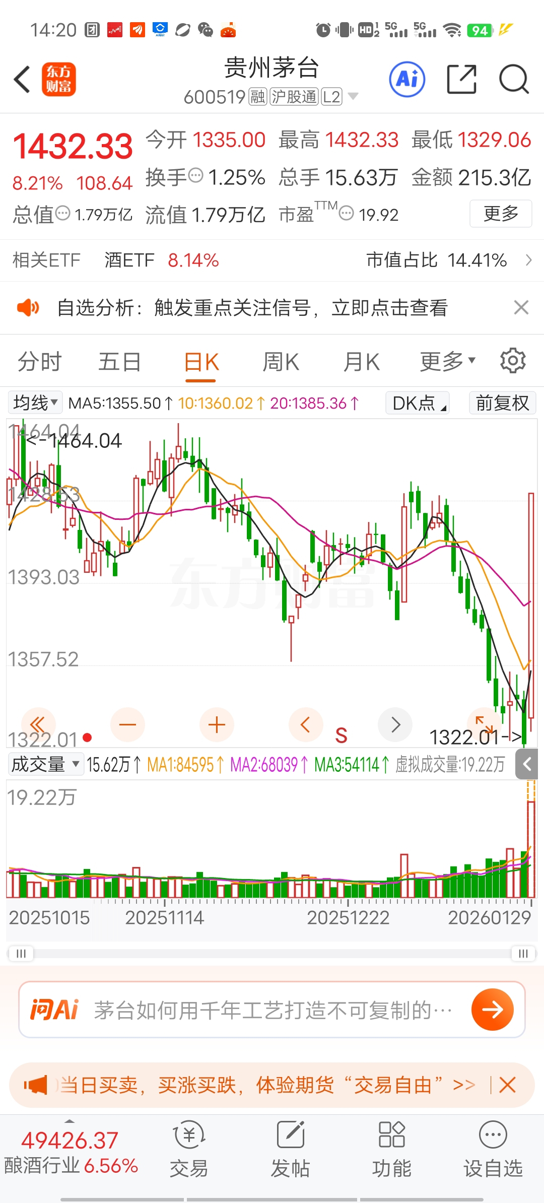 茅台跌了一个月,一天涨回来了,移动也加油啊,目标101
