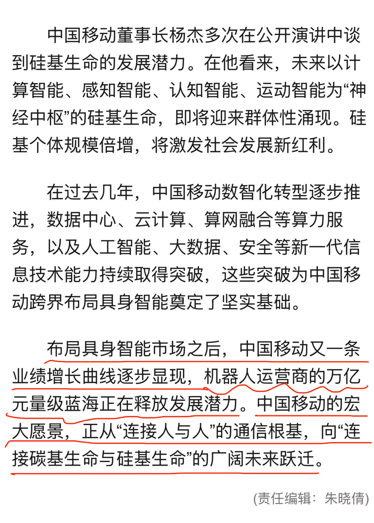 中国移动:全球最大的通信运营商(稳定的基础)+目标成为全球最大的机器人运营商(万亿级巨大的成长性)