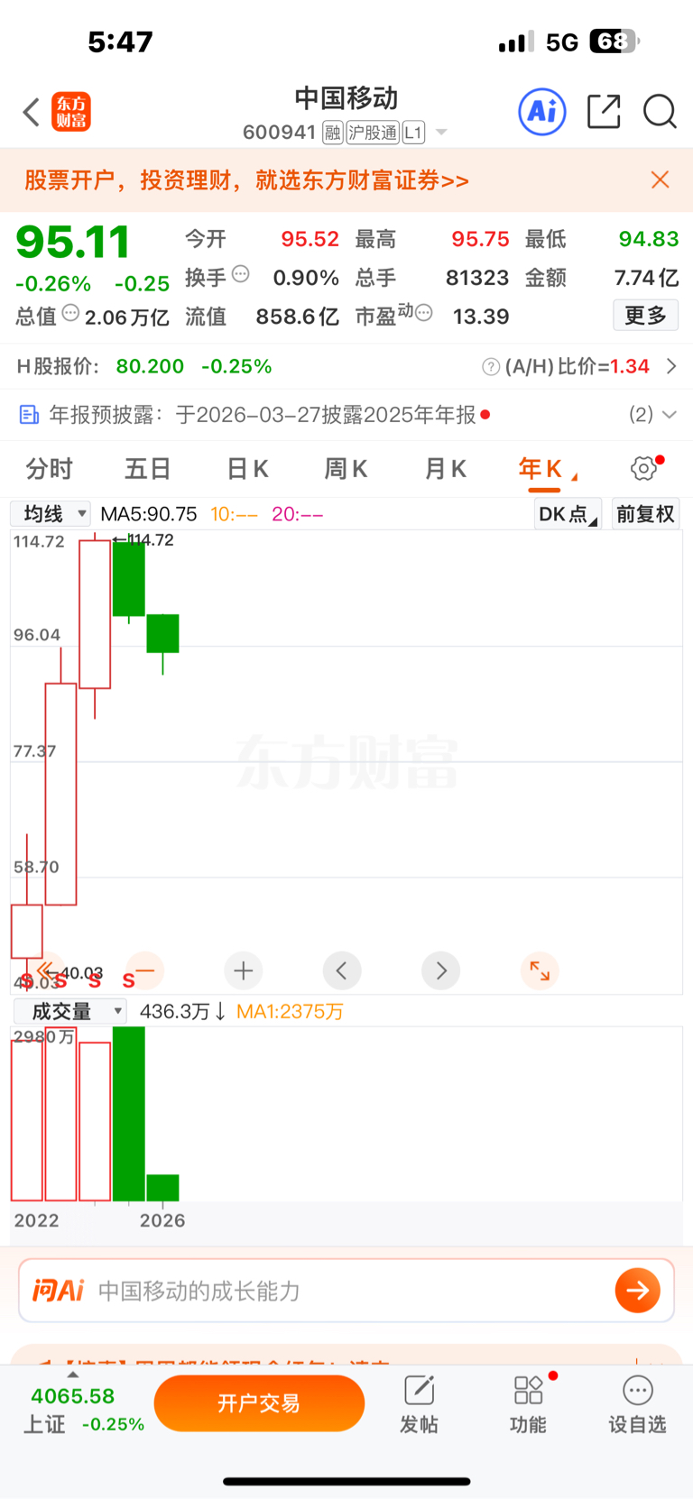 $中国移动(SH600941)$ 如果能投资30年不卖的人一定能赚大钱