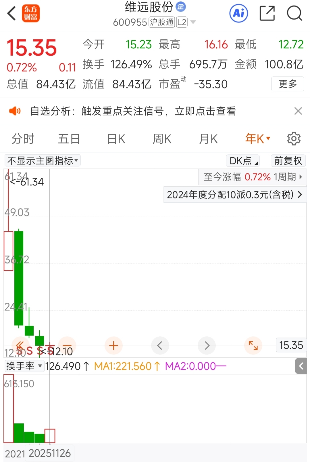 $维远股份(SH600955)$ 昨天涨停后,全年才涨0.11元
