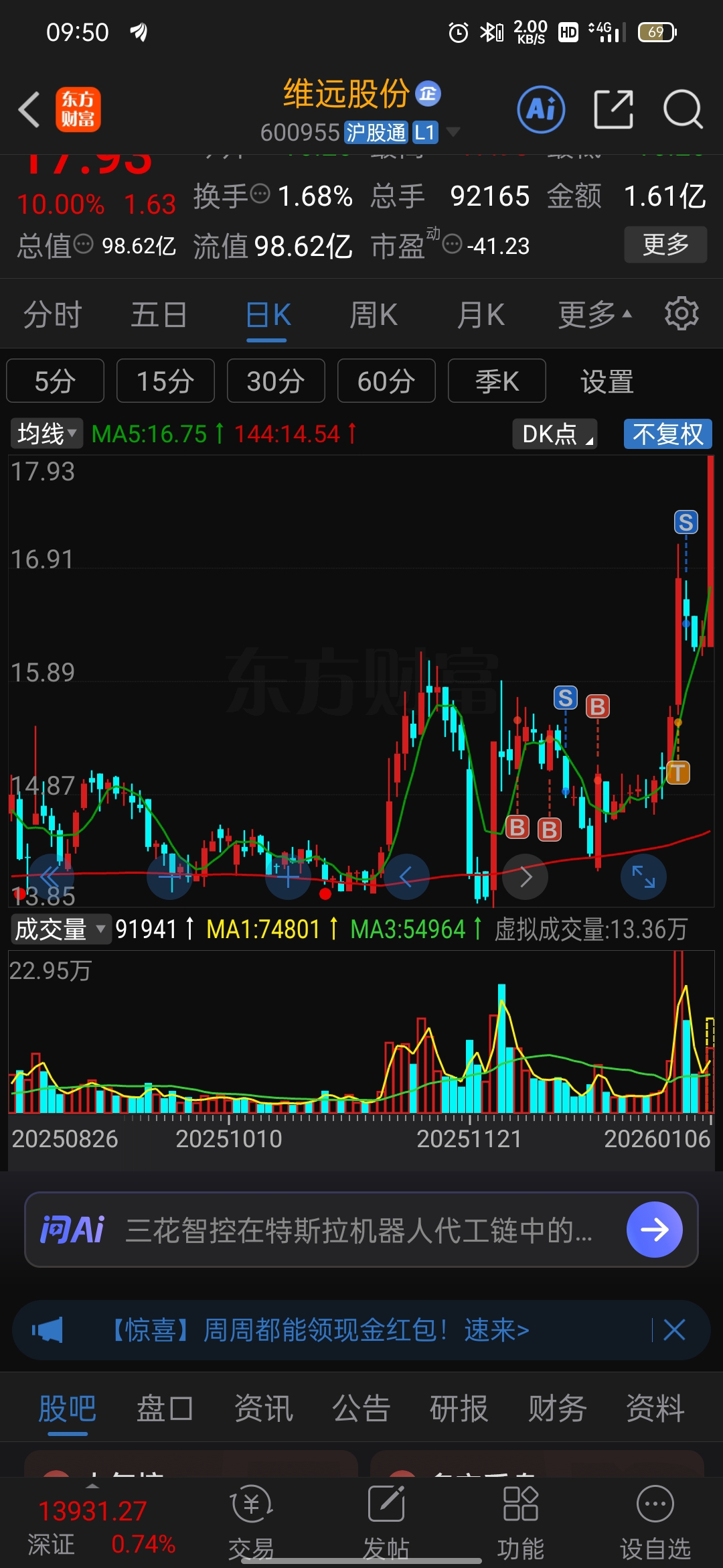 温馨提示: 1.根据《证券法》规定,禁止编造、传播虚假信息或者误导性信息,扰乱证券市场;2.用户在本社区发表的所有资料、言论等仅代表个人观点,与本网站立场无关,不对您构成任何投资建议。用户应基于自己的独立判断,自行决定证券投资并承担相应风险。《东方财富社区管理规定》