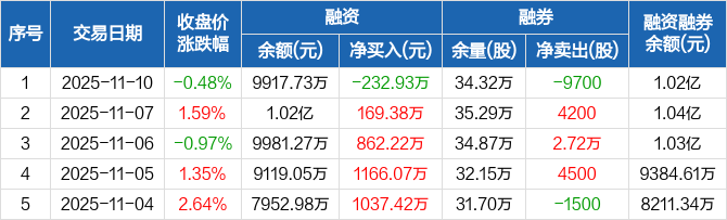 新天绿能:融资净偿还232.93万元,融资余额9917.73万元(11-10)