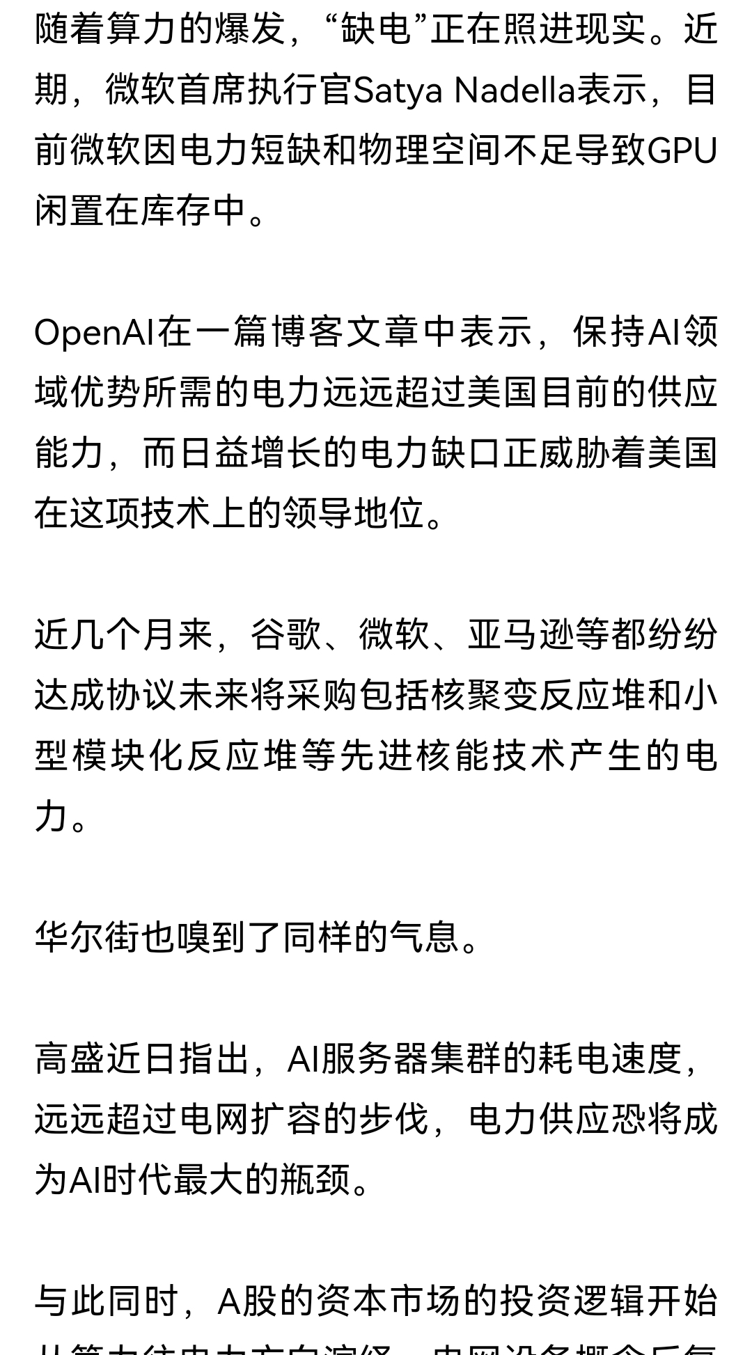 $新天绿能(SH600956)$ $三峡能源(SH600905)$ $电投能源(SZ002128)$ 票不吹不涨,芯片、算力、Ai的泡沫都吹这么大了,电力的泡沫还没有一点点,兄弟们格局打开,坐稳扶好。毕竟高盛看的还是不太准