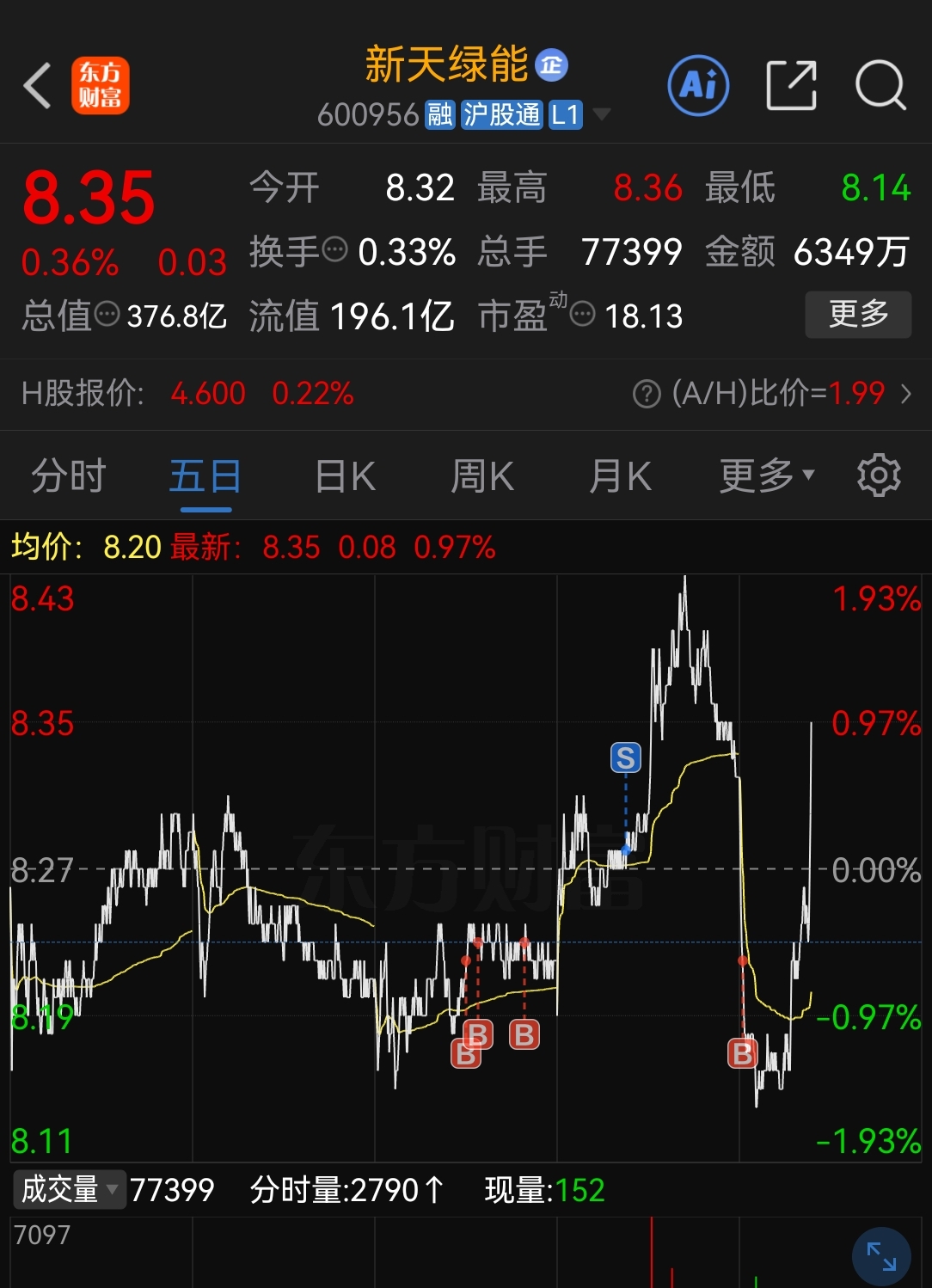 $新天绿能(SH600956)$ 牛Bplus,绿哥我love . 。