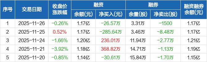 新天绿能:融资净偿还26.57万元,融资余额1.17亿元(11-26)