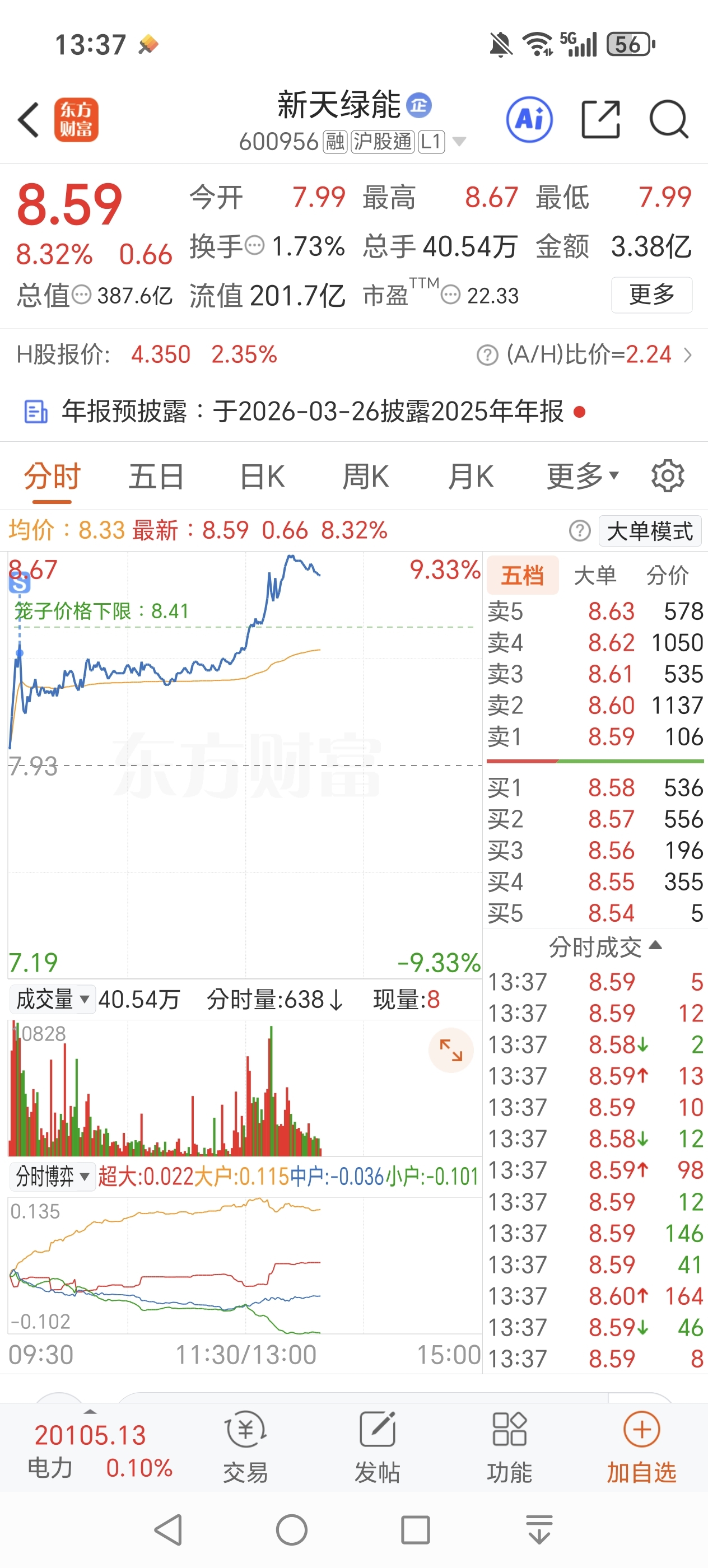 $新天绿能(SH600956)$ 牛逼,666,割了涨停