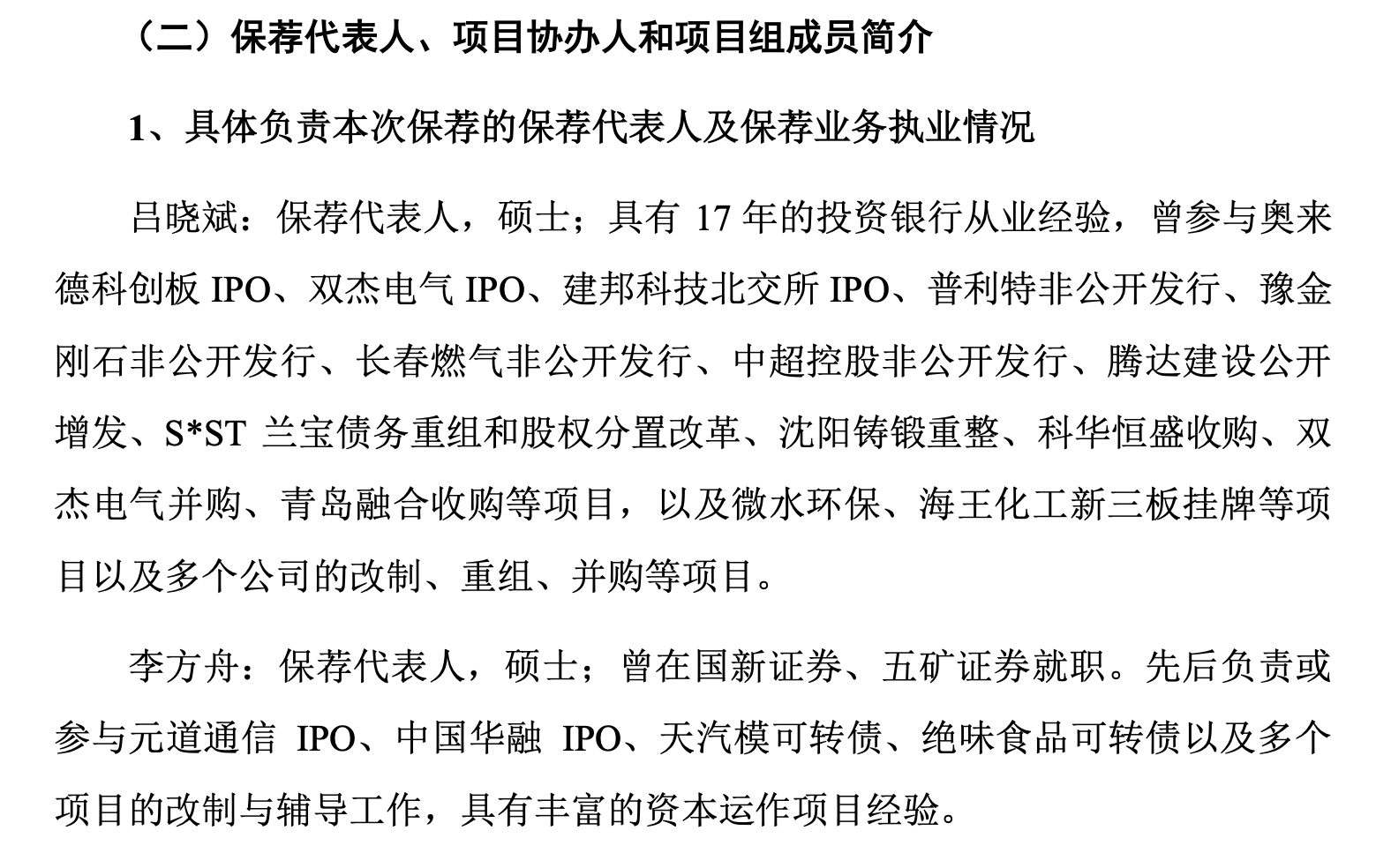 但《财中社》发现,东方证券于2025年9月为大鹏工业出具了《发行保荐书》,其中签字保荐代表人为吕晓斌、李方舟,而这两人此前已被披露因北交所自律监管被列入中证协C类名单(处罚处分类),这一现象使得市场将自律监管与大鹏工业项目相关联。