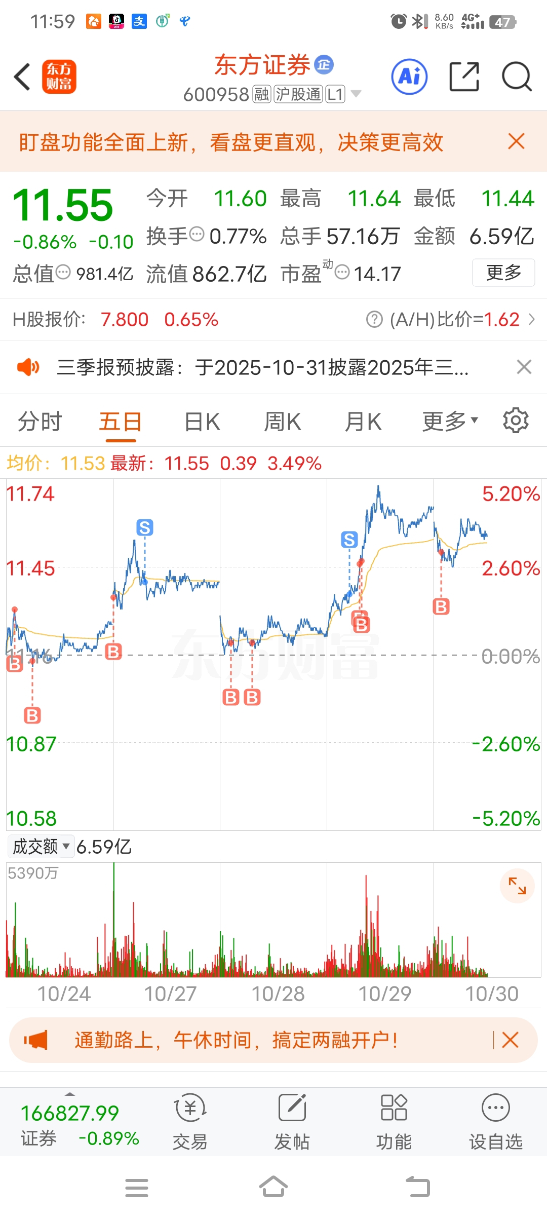 $东方证券(SH600958)$ 我就跟你干上了,每天T一个点就行了
