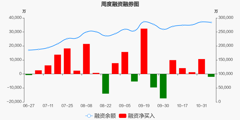 东方证券本周(2025/11/03-2025/11/07)累计跌幅达1.38%,截至11月7日最新股价报收10.74元。从增量上来看,11月3日至11月7日融资买入交易规模4.54亿元,融资偿还规模4.75亿元,期内融资净偿还2027.13万元。从存量上来看,截止11月9日,东方证券融资融券余额28.44亿元,其中融资余额规模28.42亿元,融券余额规模237.03万元。