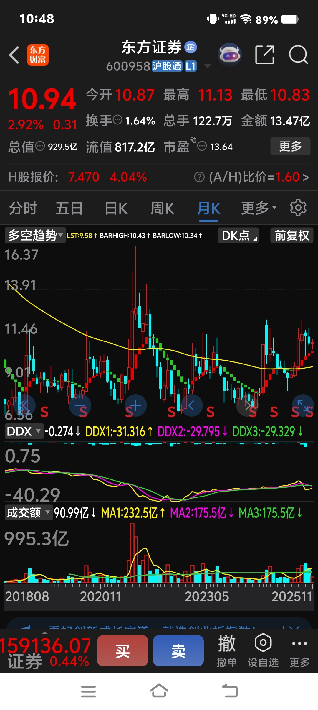 从银河转战东方10.93介入月K线完美,东兴开盘后估计股价在21左右!