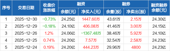 东方证券:融资净买入1447.6万元,融资余额24.25亿元(12-30)