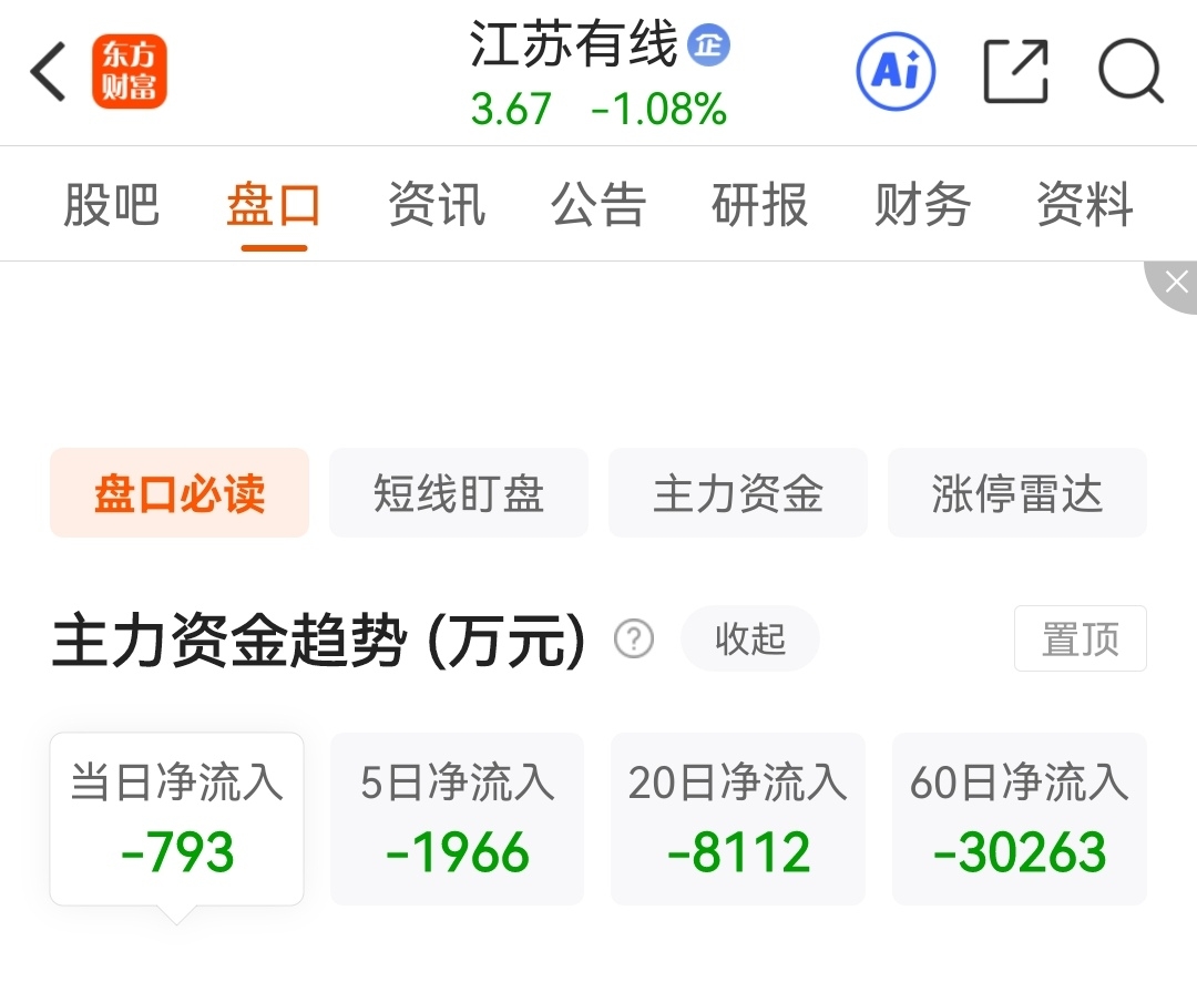 $江苏有线(SH600959)$ 60日净流入负值过大,虽然未必是主力实际情况,但参照广电板块湖北、吉视等涨停时的大额正值情况,有线短期内很难能够涨停!3.64预判已基本到了,适当加仓,坐等3.54再加一部分仓!