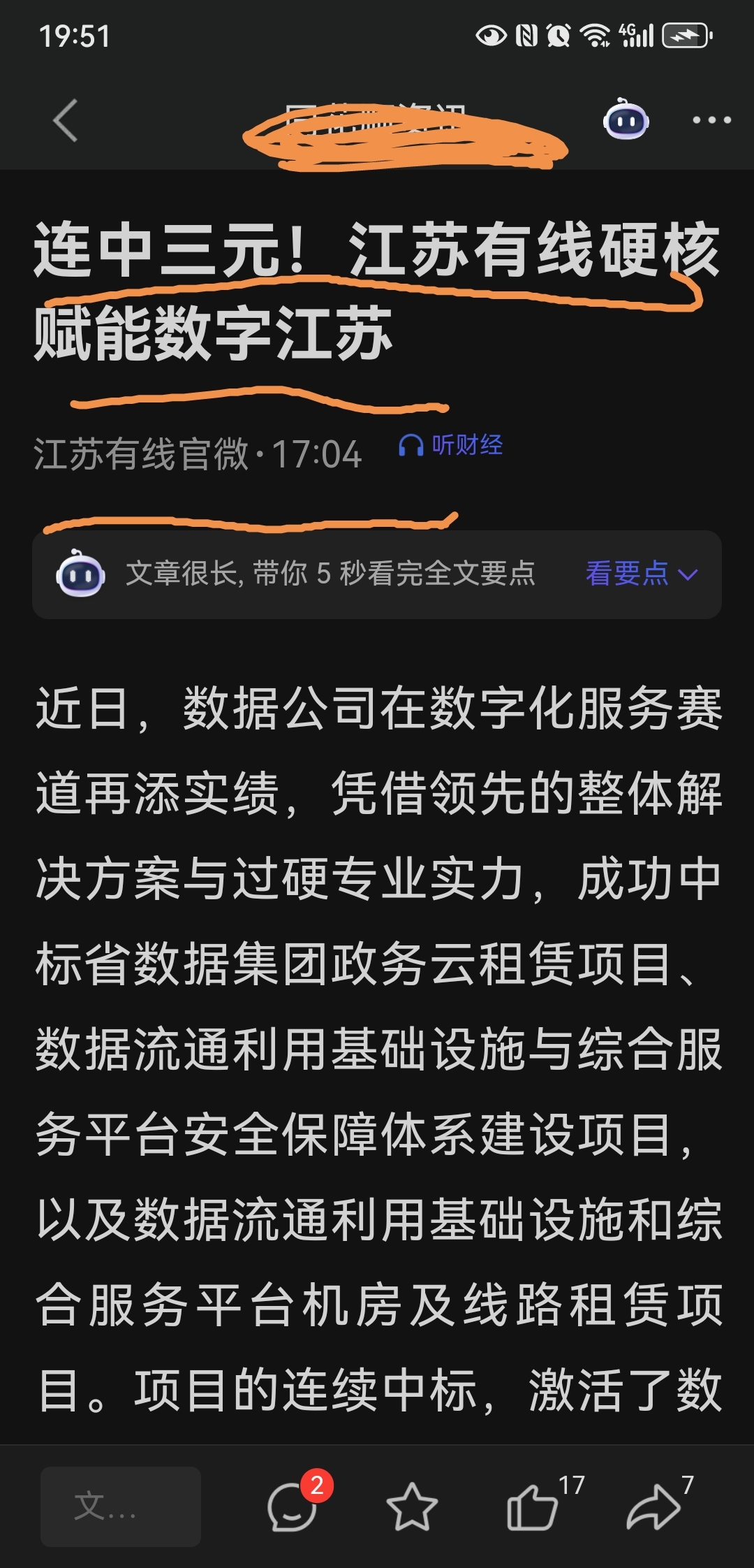 特大喜讯捷报传,江苏有线中三元!