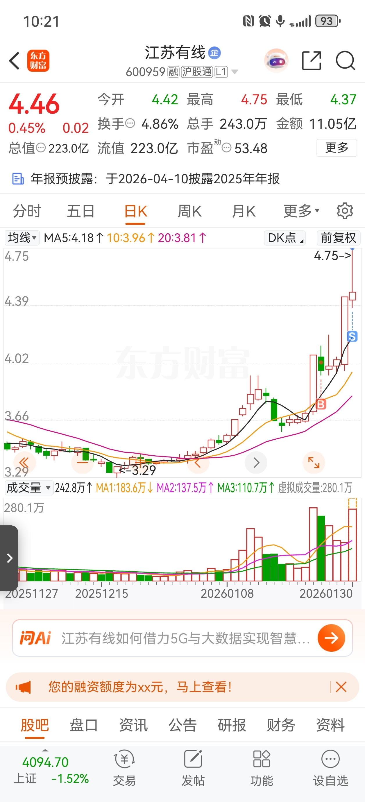 $江苏有线(SH600959)$ 各位慢慢吃面 我先走了