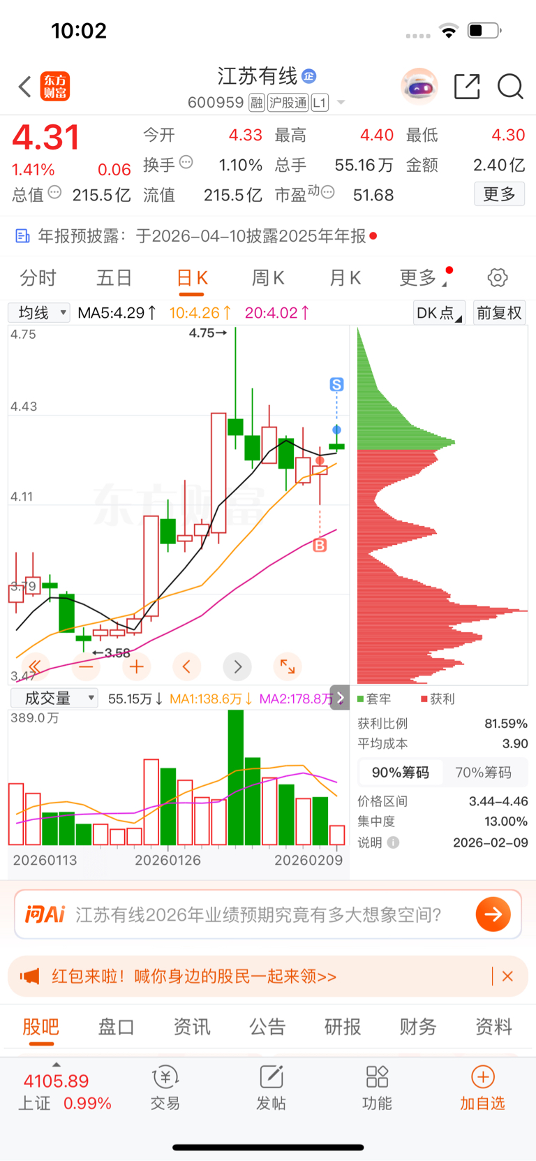 $江苏有线(SH600959)$ 简简单单,拿了就走