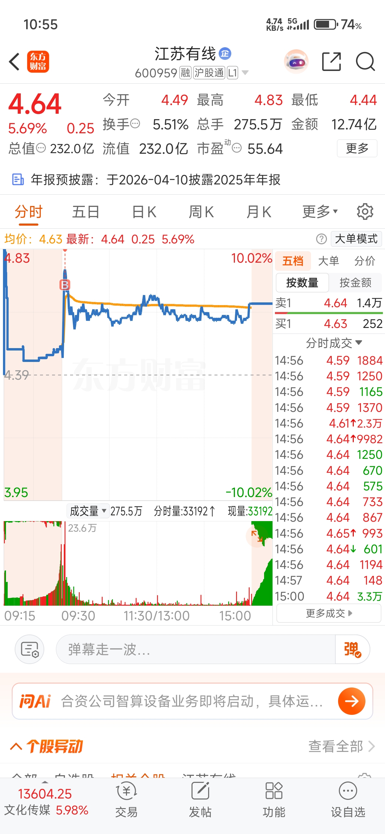 今天打板了3个真的是没有一个涨停还以为江苏有钱看错了